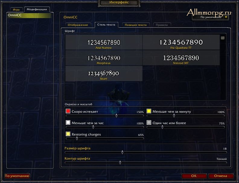 OmniCC – полностью изменяет стандартное отображение перезарядки. Не требует установки дополнительных модификаций, очень прост и гибок в настройке. Замечу, аддон не влияет на отображение бафов/дебафов, только на перезарядку заклинаний и предметов.