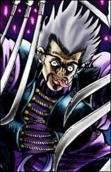 Эн'Доул | неизвестно | Первый верный посланник Дио, который выполнял все приказы своего босса. Несмотря на отсутствие зрения, был эффективным и опасным в бою. После проигрыша убил себя, чтобы не выдавать секреты Дио.