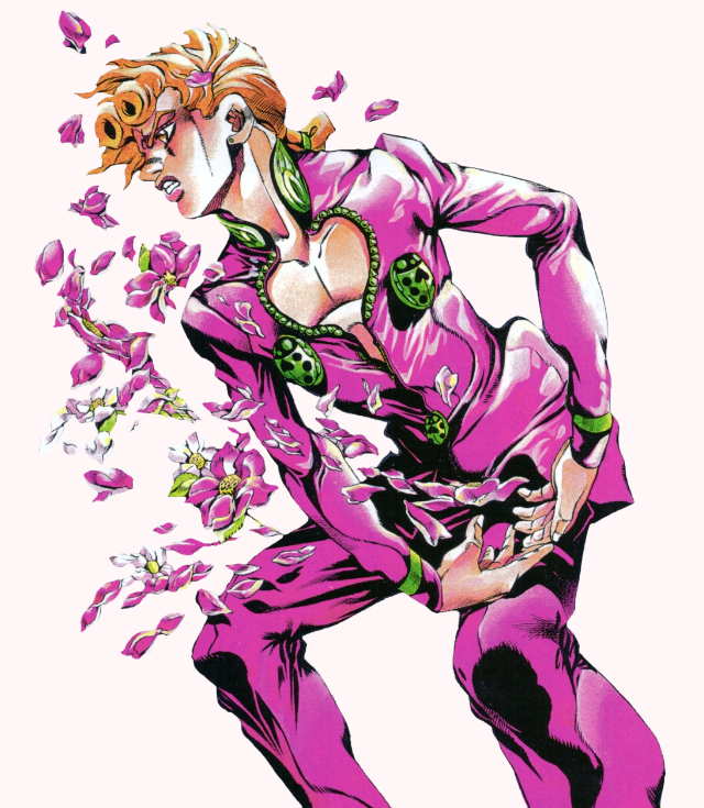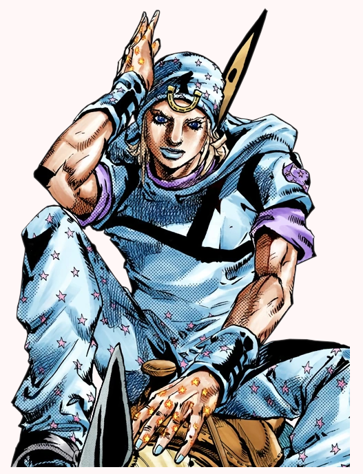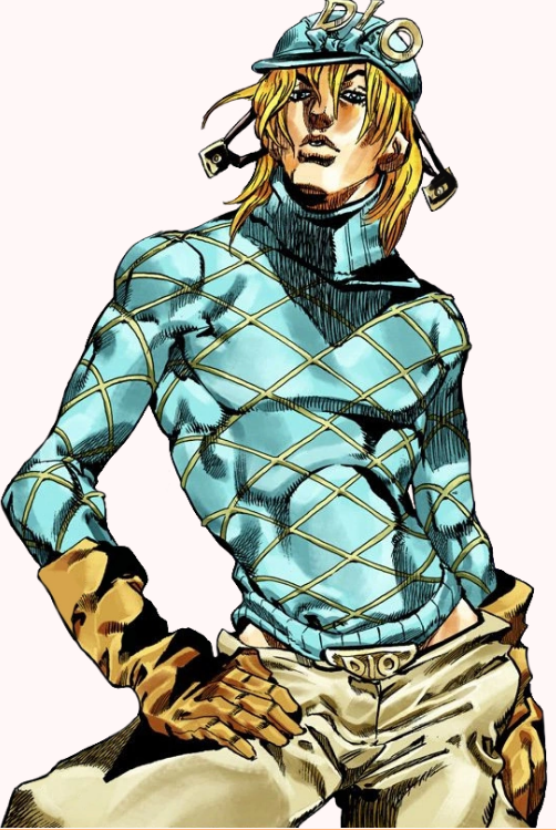 Молодой и амбициозный человек, которому несладко пришлось в детстве. Он постоянно становился объектом избиения со стороны хулиганов и собственного отчима. Его родословная приводит к биологическому отцу по имени Дио, но по факту он является наследником Джостара. С детства мечтал стать частью мафии «Пассионе». Он решительный, умный и ловко умеет подстраивать ситуацию под личную выгоду. Его не страшат последствия, травмы и боль, только конечная цель и результат. По сравнению с другими Джостарами, он хилый и не такой массивный, но вместо этого обладает блестящим интеллектом.