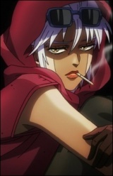 Сантана | неизвестно | Это древний человек, который был пробужден и стал объектом экспериментов по созданию сверхлюдей. Правда результаты испытаний были не лучшими и с виду грозный воин казался обычным глупым мальчишкой. Он мог с легкостью разбирать оружие, но в плане интеллекта сильно отставал от соратников.