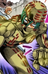 Способности стенда: невероятная сила, разрыв пространства и ускорение старения цели.
