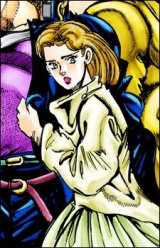 Эрина Пендлтон | неизвестно | Маленькая и милая девочка, которую однажды спас Джостара. Она сразу влюбилась в него и постоянно заботилась, помогая преодолевать все невзгоды и трудности, в дальнейшем стала его возлюбленной. Дио страшно ее ревновал, но не мог ничего с этим поделать. Эрина прожила долгую, но тяжелую жизнь. Она потеряла мужа, сына и чуть не осталась без внука, но все это не сломило ее и она оставалась такой же доброжелательной. |