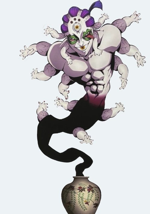Способности: в совершенстве обладает демоническими способностями, может манипулировать своей кровью и плотью; использует горшок, в котором может прятаться и телепортироваться в любое место.