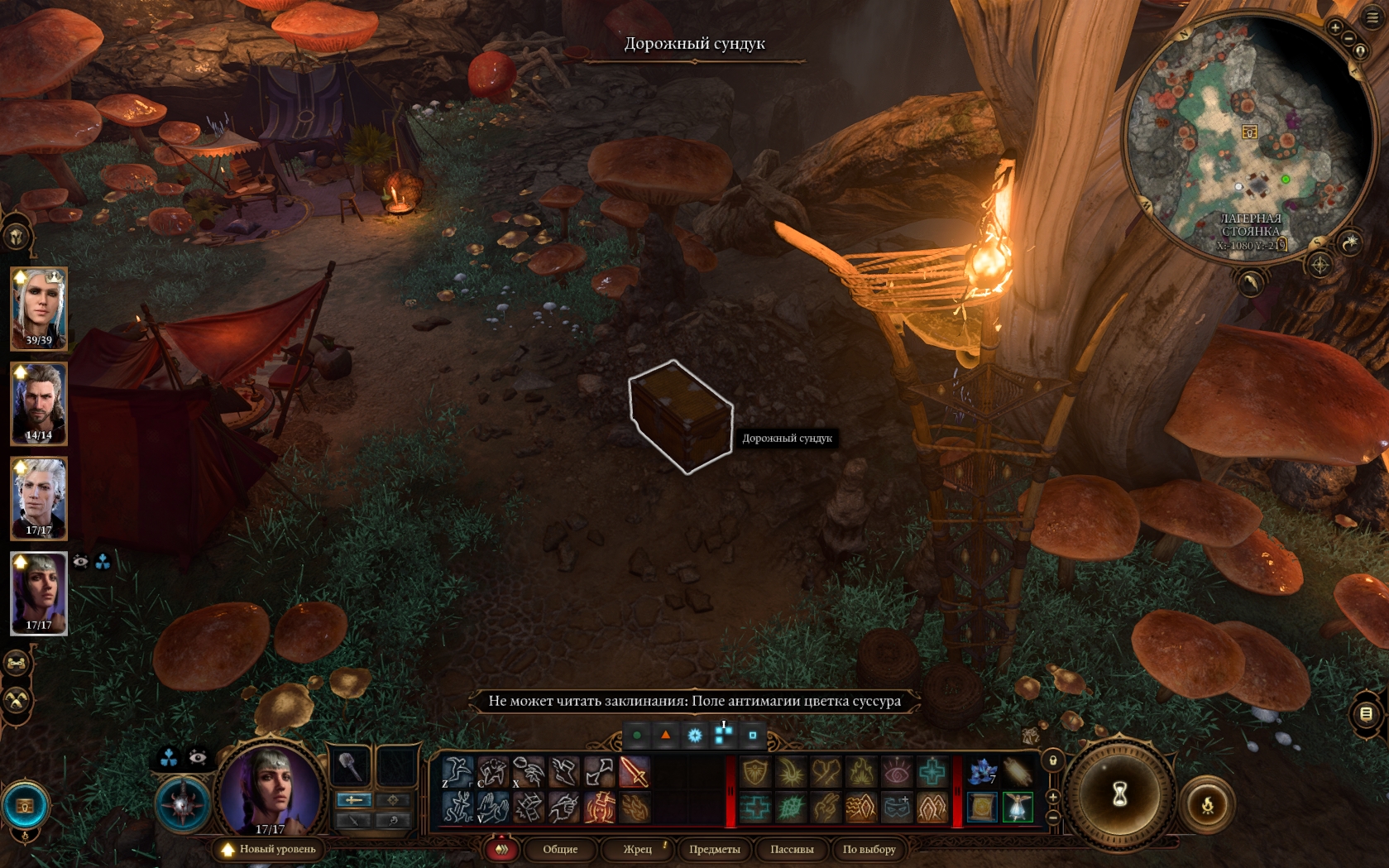 1. Переместитесь в свой лагерь (нажмите кнопку со значком костра справа от панели с умениями);