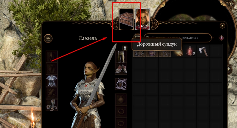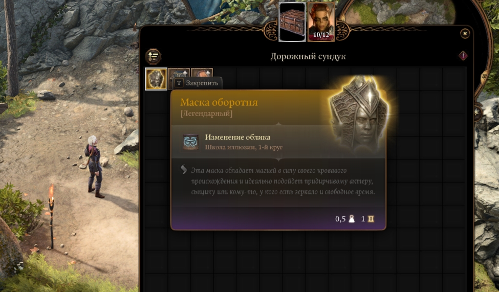 3. Откройте его и возьмите Маску оборотня. Если при открытии сундука вы видите содержимое сумки главного героя или одного из своих компаньонов, кликните по значку сундука для смены вкладки инвентаря.