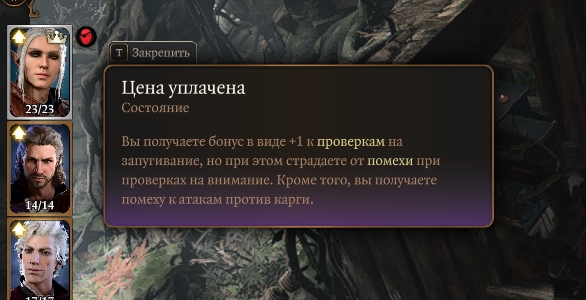 Примечание: если у вы ранее уже потеряли один глаз по какой-либо причине, к примеру, его удалил бард Воло в попытках помочь вам избавиться от паразита, то старуха откажется заключать сделку. Вы можете переключиться на любого другого члена своего отряда и попробовать снова обратиться к ней за помощью. Кто будет отдавать ей свой глаз, совершенно не важно.