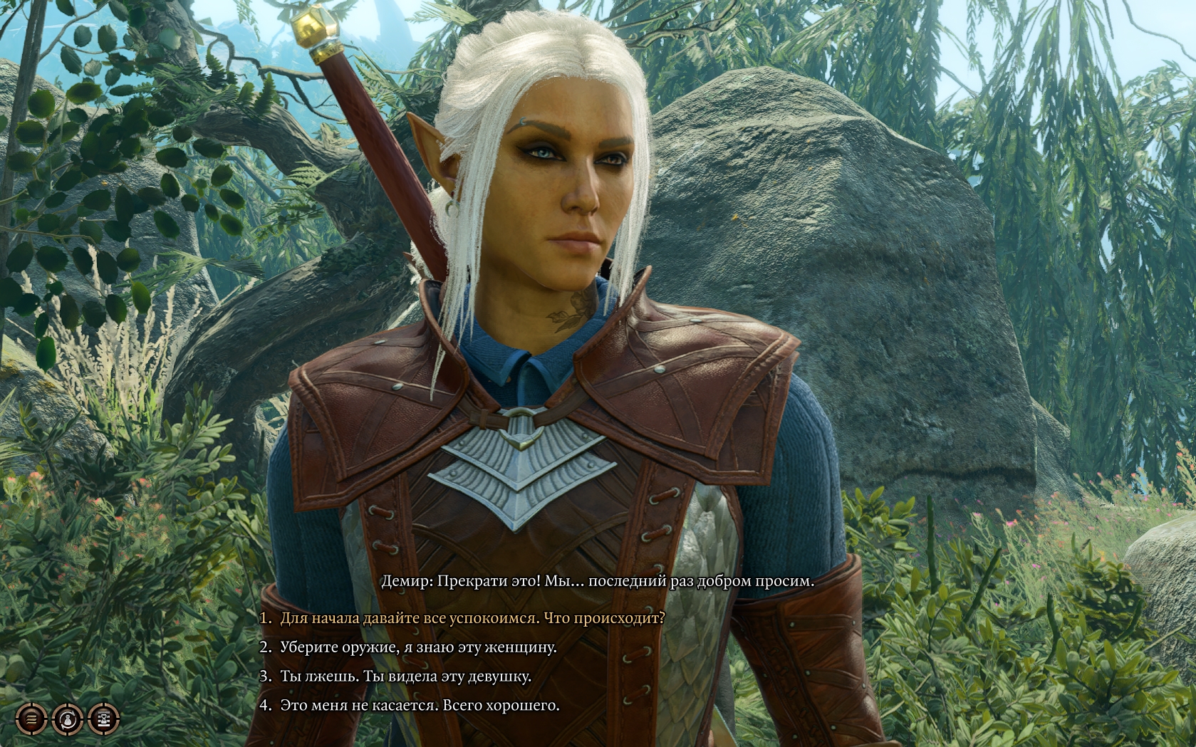 Подойдите к ним, чтобы запустить диалоговую сцену. На этом этапе игра предложит несколько вариантов развития событий: