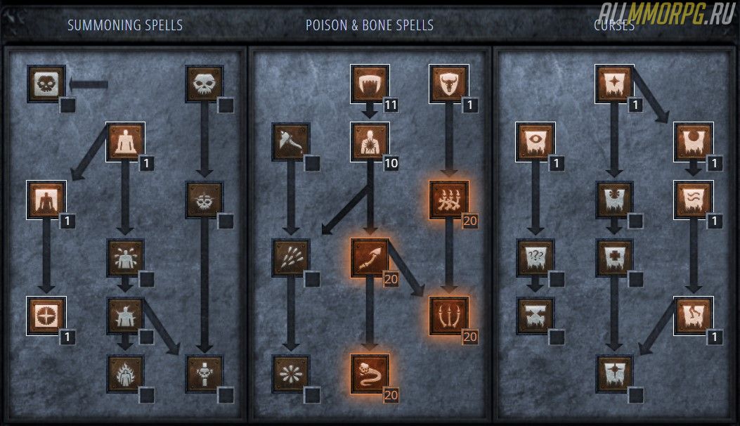 Ниже представлены рекомендации по прокачке костяного некроманта на низких уровнях.
