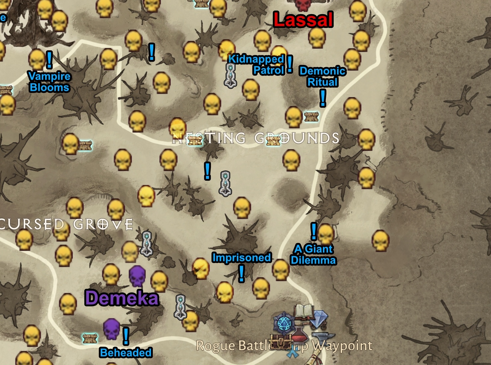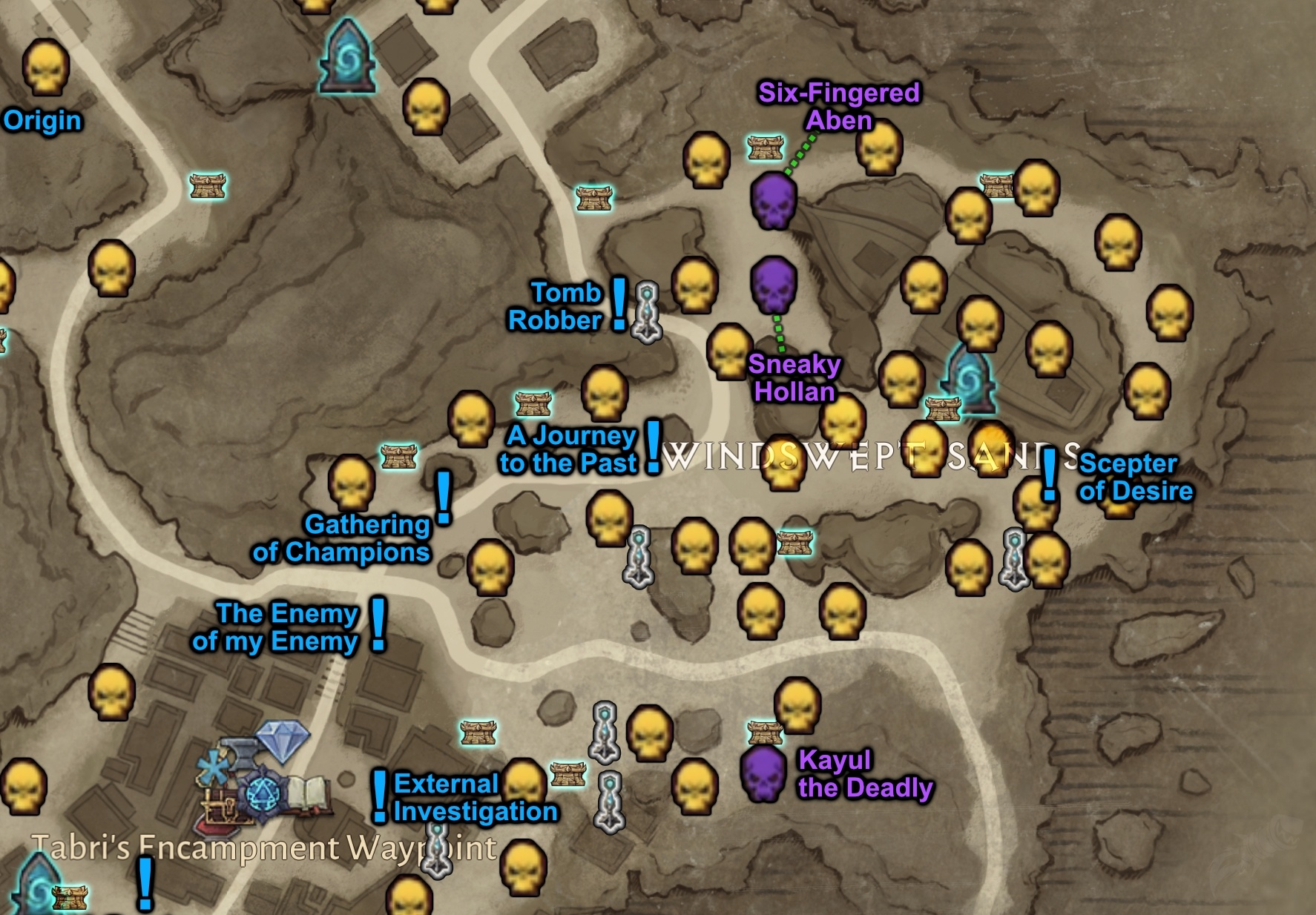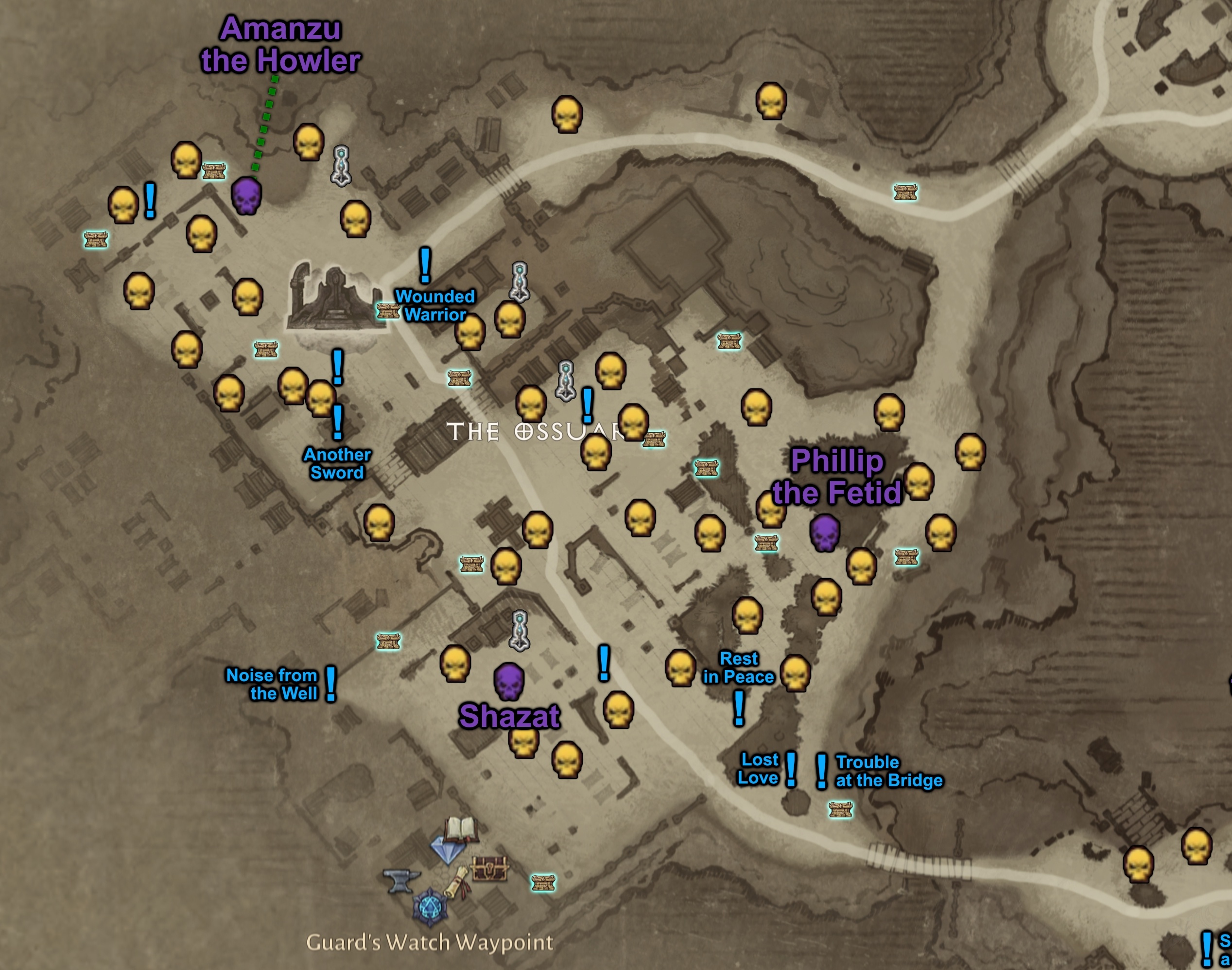 В список побочных квестов входят и случайные активности, цель которых – убить элитного врага. На изображениях ниже вы можете увидеть местоположение всех второстепенных заданий, элитных квестовых врагов и монстров, из которых выпадают ценные предметы (нажмите на картинку, чтобы увеличить).