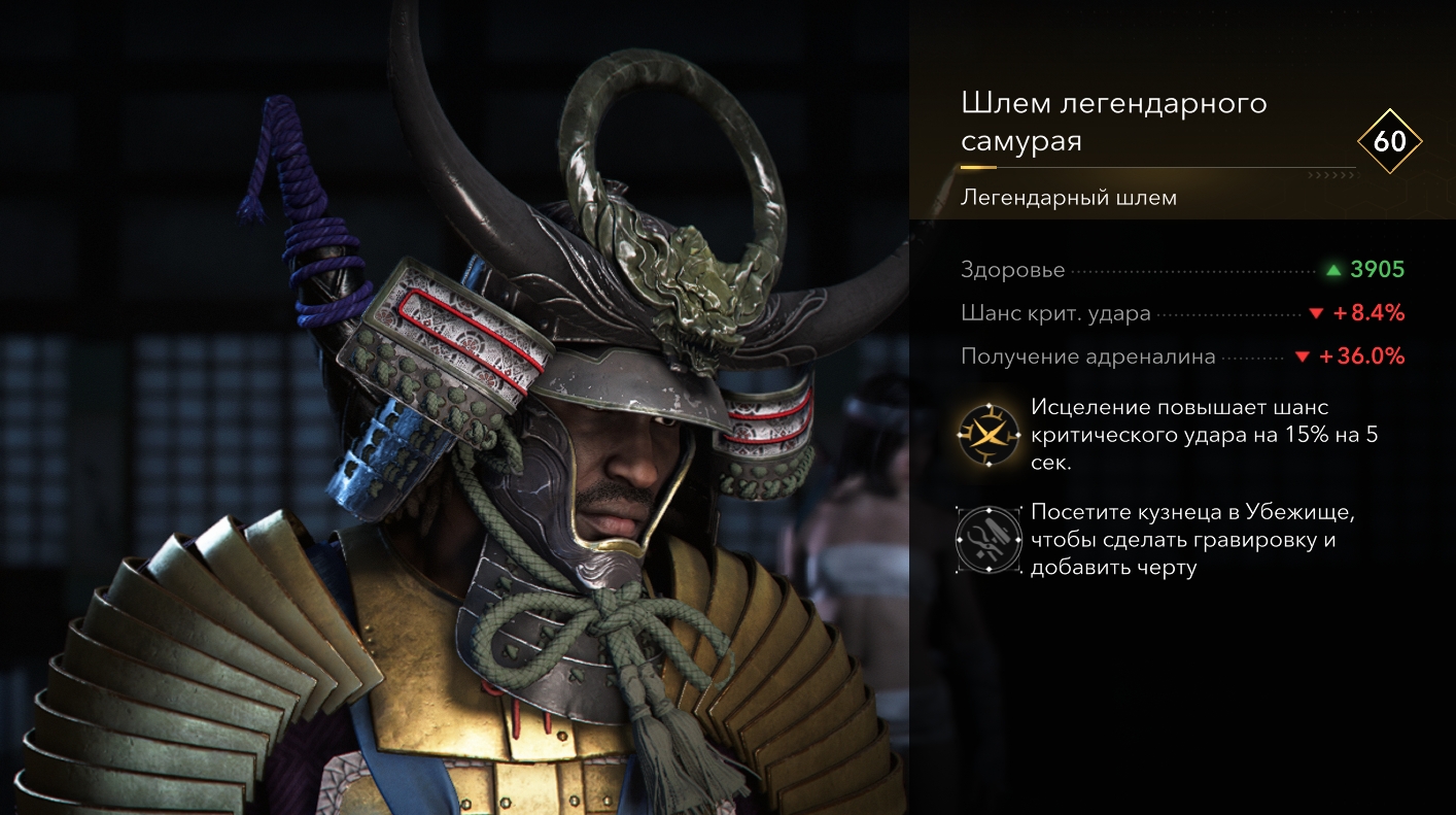 Поклонников стелса мы, к сожалению, разочаруем – легендарных головных уборов, которые подошли бы Ясукэ для игры в режиме скрытности, в Assassin's Creed Shadows нет. Если вы хотите часто пользоваться стелсом, экипируйте его любым шлемом эпического качества, который дает бонусы к урону при выстрелах из лука в голову противника.