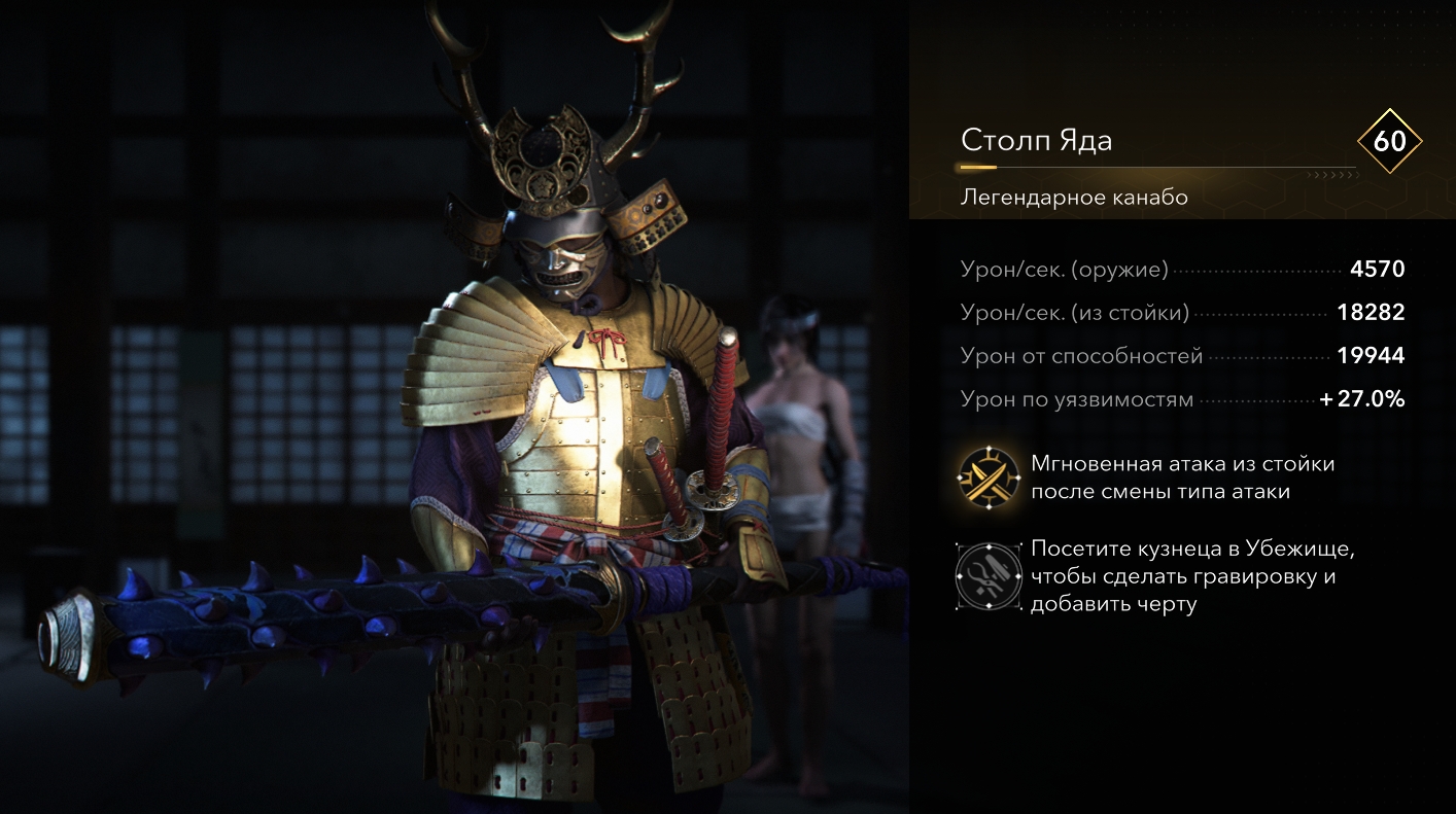 Выбирая канабо, остановите свое внимание на Столпе Яда, который увеличивает урон по уязвимостям и позволяет выполнять мгновенную атаку из стойки после смены типа атаки.