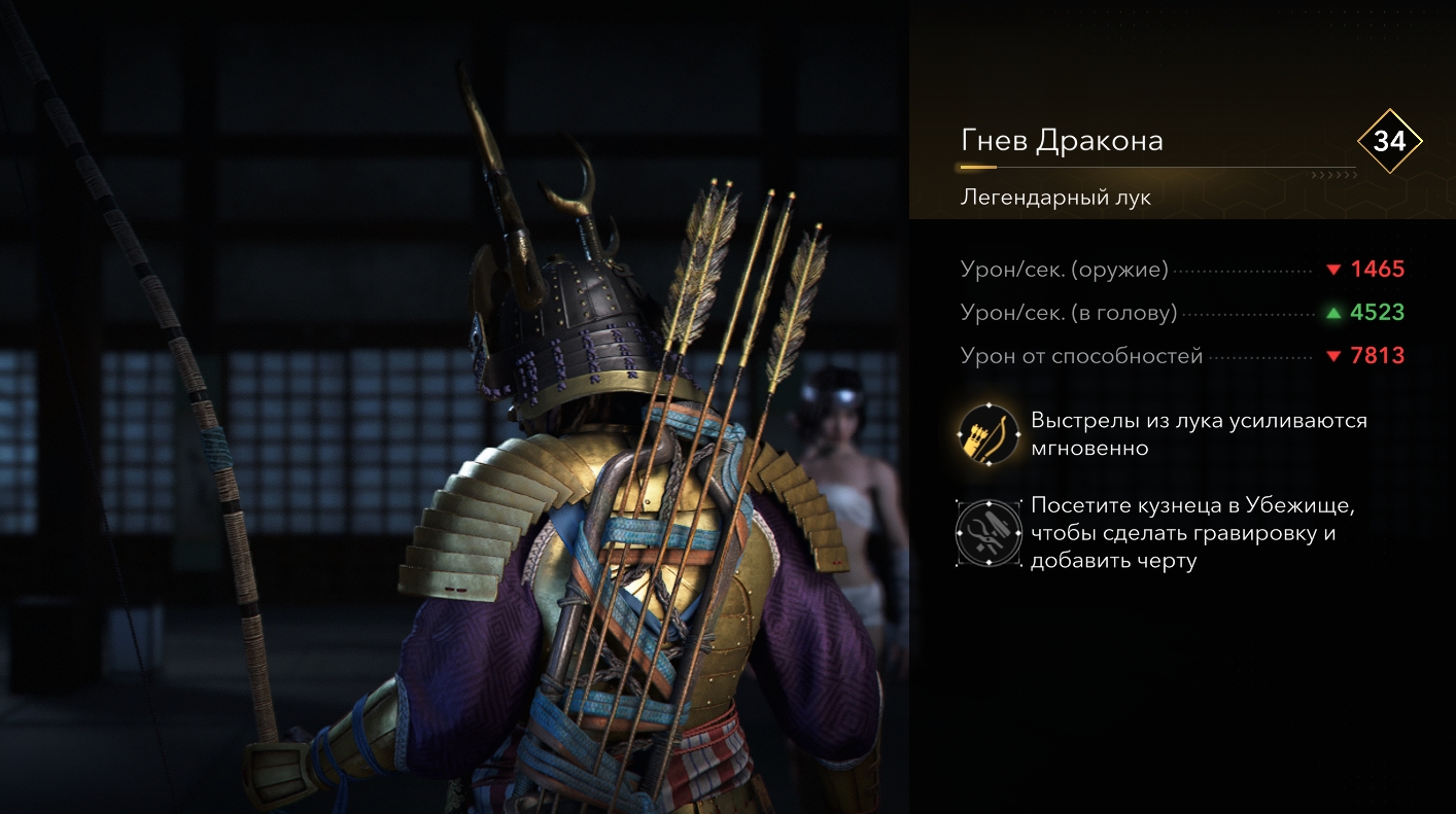 Лучший лук для Ясукэ – Гнев Дракона. Его основным преимуществом считается мгновенное усиление выстрелов, что идеально походит для совершения «тихих» убийств.