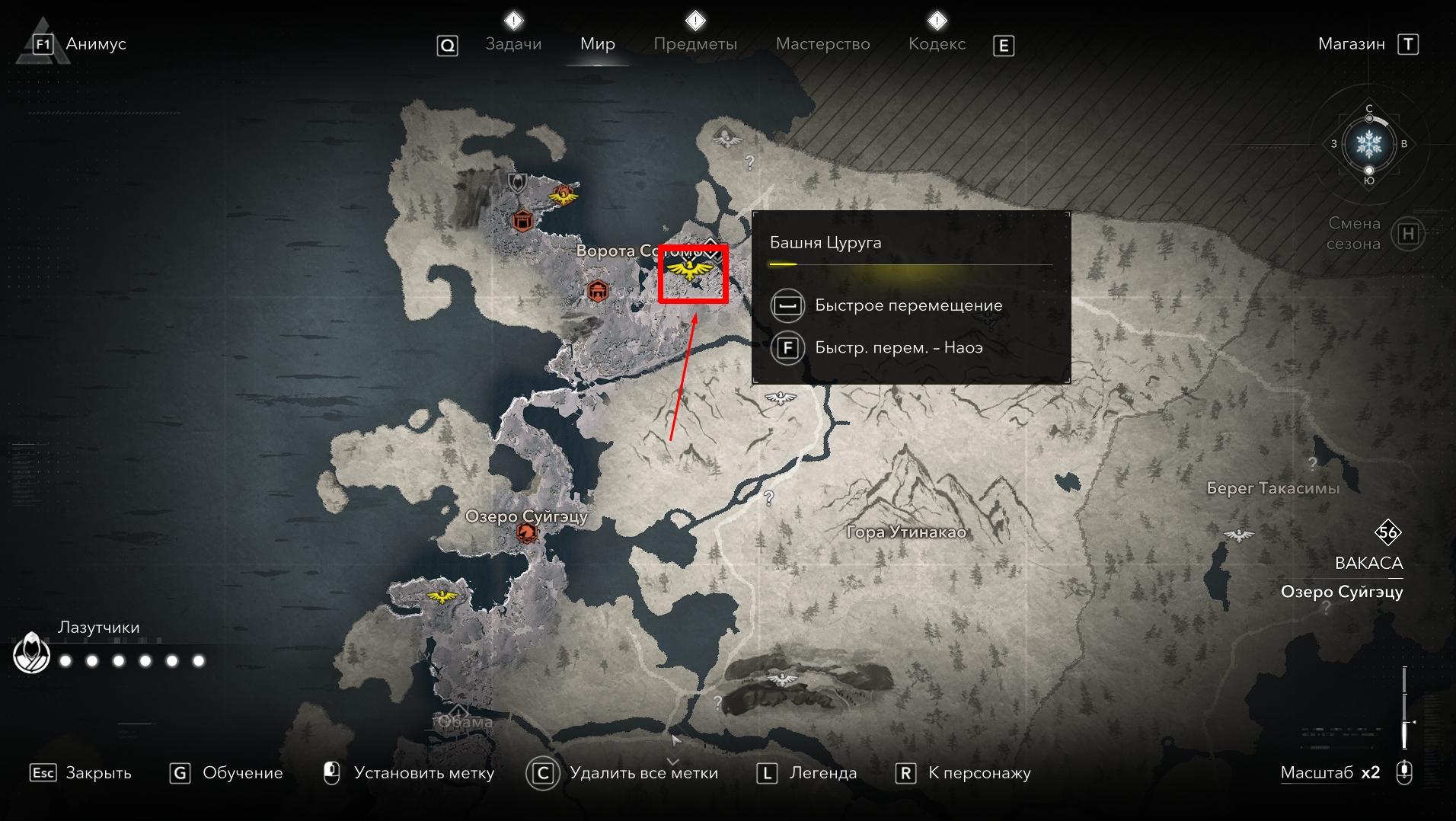 • Лежит в сундуке в одноэтажном здании в северной части территории Замка Цуруга в Вакасе. Открыть его можно только после победы над двумя самураями-дайсё. Его точное местоположение отмечено на скриншотах ниже