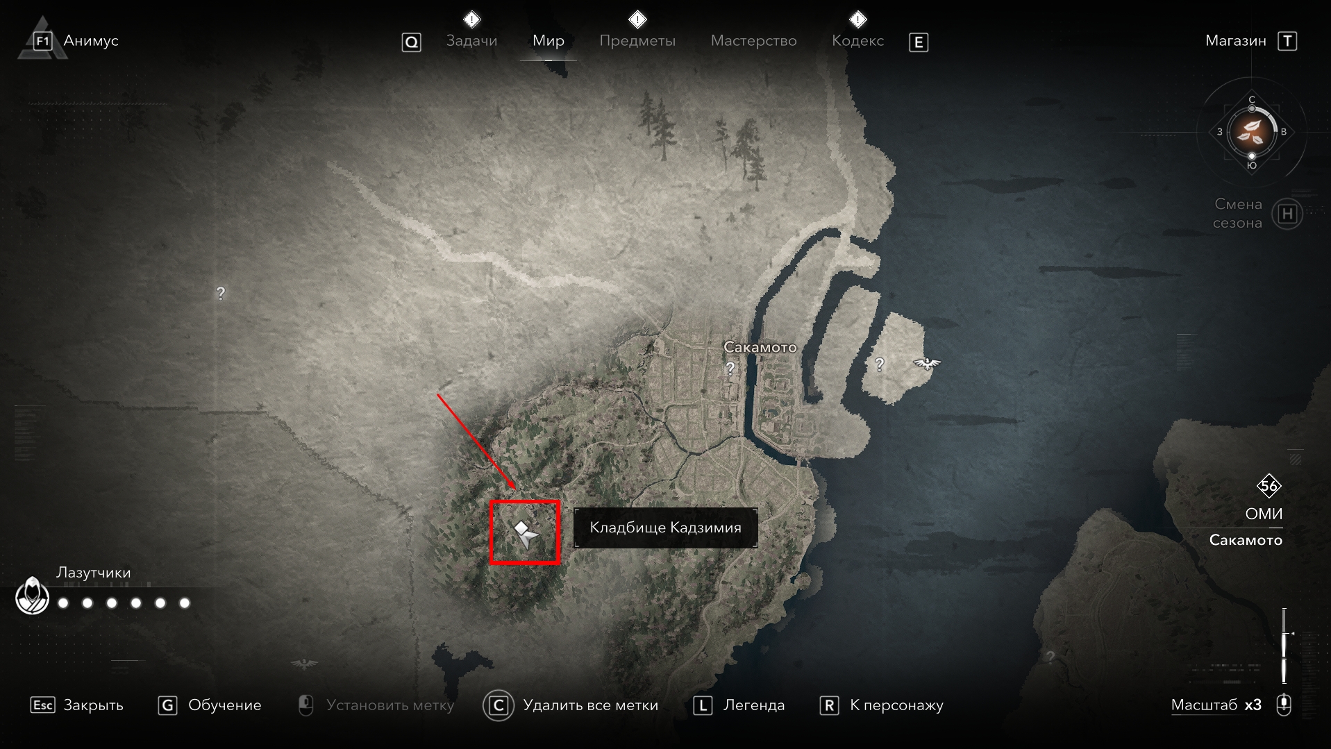 1 Отыщите на юго-западе от Сакамото (Оми) Кладбище Кадзимия
