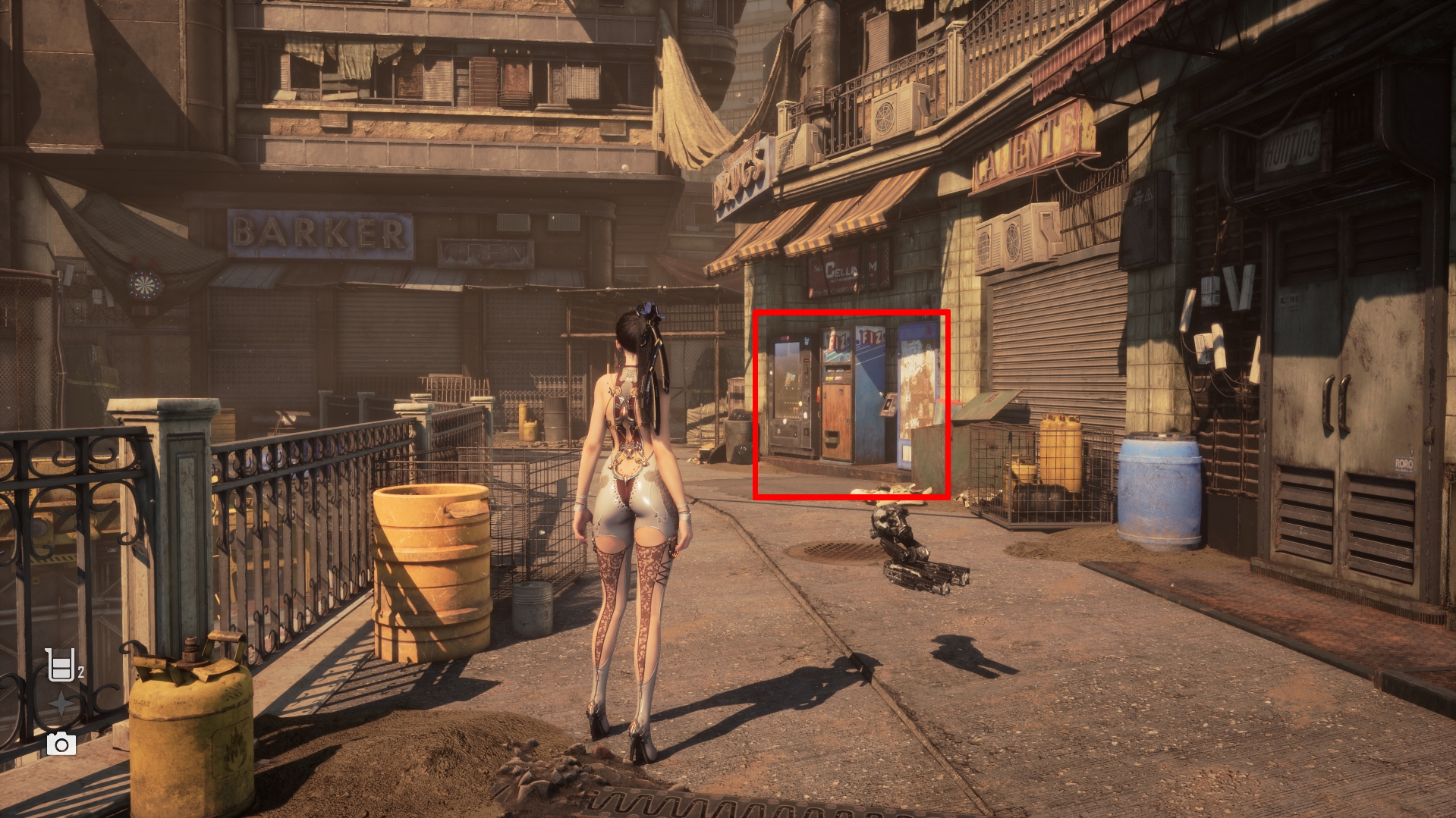 Направляйтесь к украшенной елке перед главной площадью и войдите в переулок слева (в тот, где находится бар «Последний глоток»). В начале переулка рядом со стеной, на которой изображена ветвь сакуры, стоит торговый автомат с банкой «Бегемот» красный».