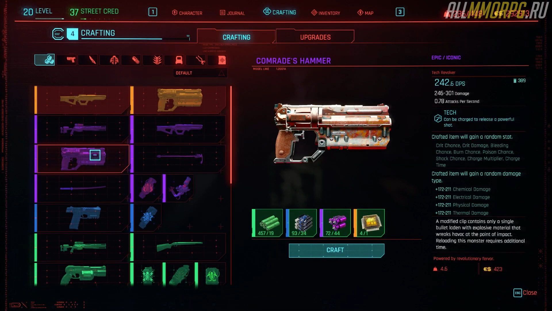 После того, как вы получили чертеж для крафта культового револьвера, откройте вкладку ремесла, выберите оружие в списке доступных предметов для производства и посмотрите, есть ли у вас компоненты для его изготовления: