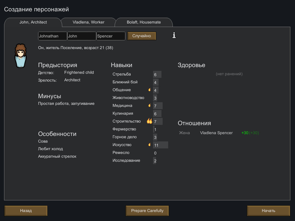 Кроме навыков важно также обращать внимание на характеристики поселенцев. Некоторые из них могут иметь параметры, совершенно неподходящие для начала игры. К ним относятся: