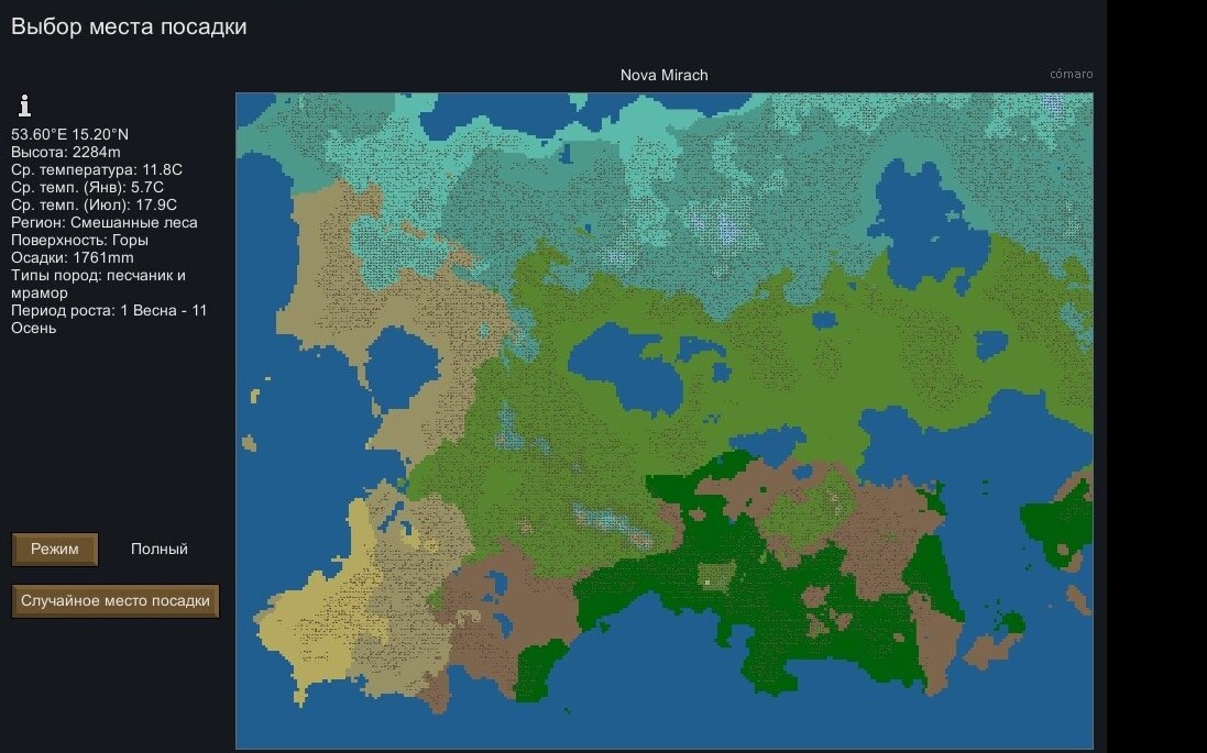 На следующем этапе предстоит выбрать область, в которую десантируется корабль с поселенцами. На выбор предлагаются следующие территории: