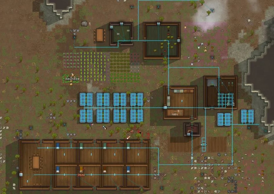 Важным элементом вашей базы будет являться электричество. Без него буквально никуда, так как слишком многие предметы питаются электроэнергией. При строительстве колонии обязательно учитывайте пути подачи энергии и каким образом вы будете ее получать.