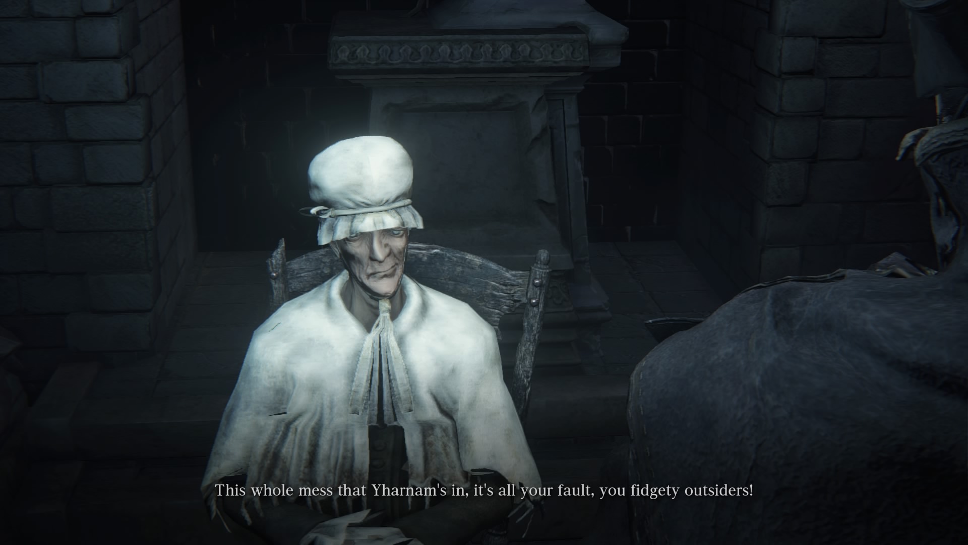 Если этот персонаж попадает в часовню Идон, то он будет находиться там до самого конца игры. Вы также сможете его убить в этом месте, чтобы получить три смеси едкой крови и 118 отголосков крови.