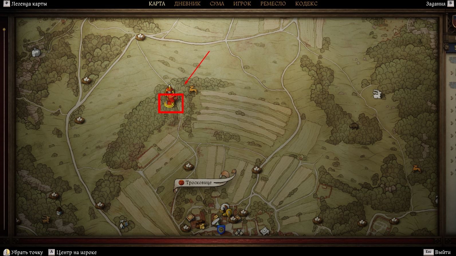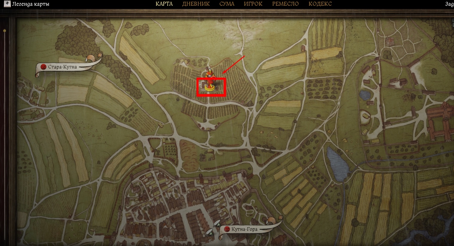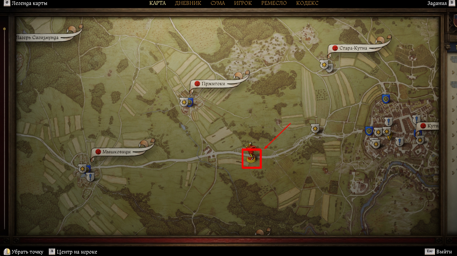 • Лежит в сундуке разграбленного каравана на обочине дороги на между Мышковицами и Кутна-Горой