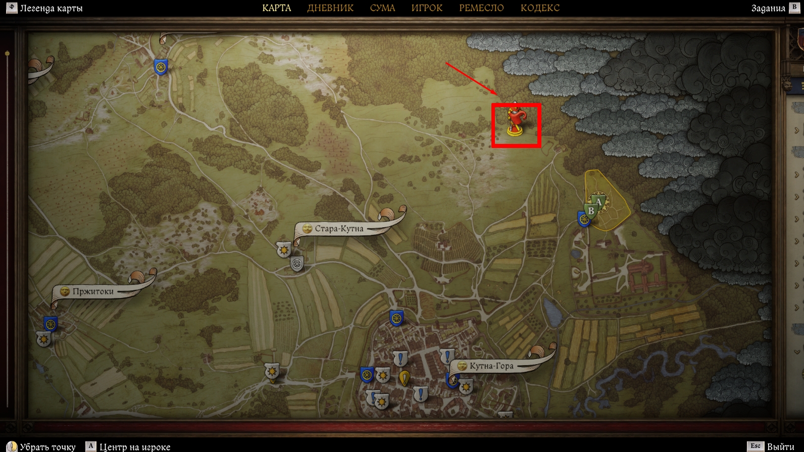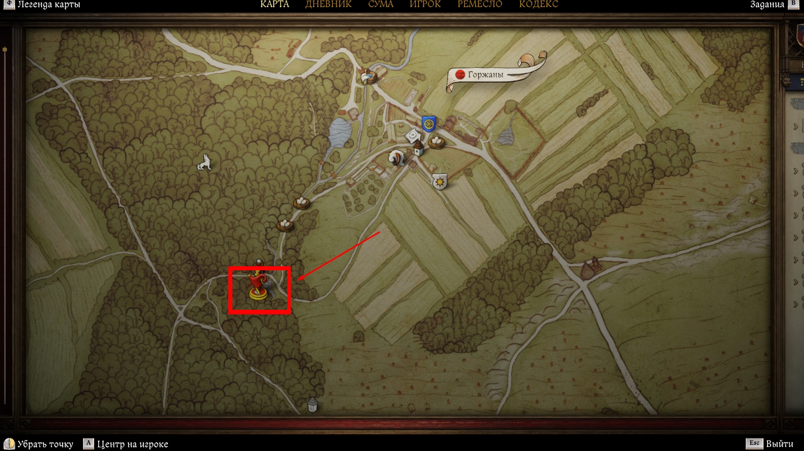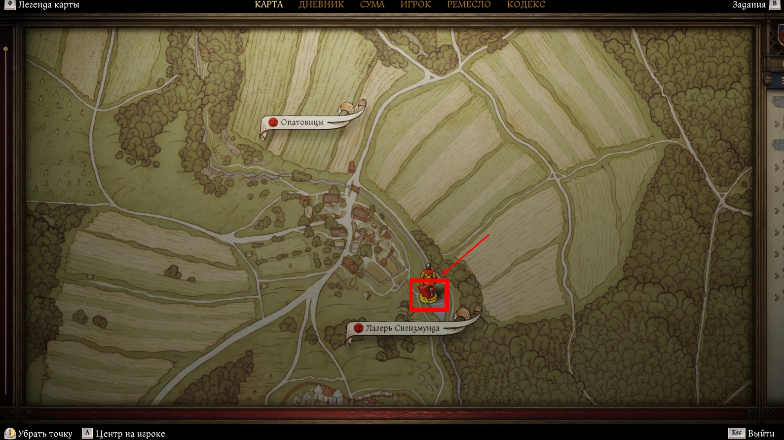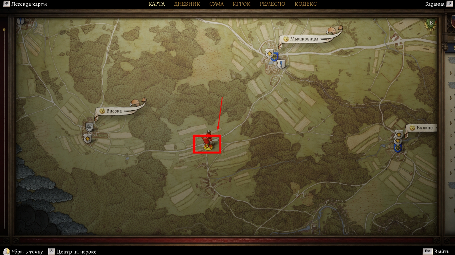 • Лежит в сундуке разграбленного каравана на обочине дороги на между Мышковицами и Кутна-Горой