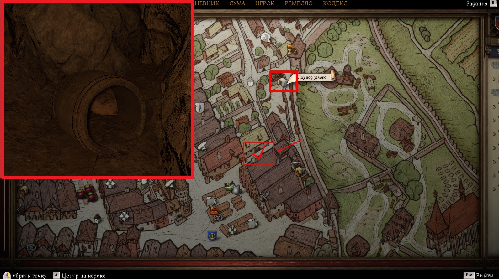 - Находится в подземных лабиринтах под Кутна-Горой, куда можно спуститься через шахту в северо-восточной части города. Обыщите туннели и найдите тупик с огромным камнем и лежащей рядом бочкой – в ней находится мешок с вещами Козятина, в котором лежит Шапка вора. Если вы не можете взаимодействовать с мешком, значит, не выполнили требования: нужно дойти до сюжетного задания «В подземелье»