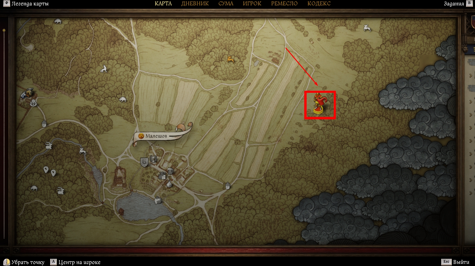- Лежит в сундуке в половецком лагере, который находится у края леса на северо-востоке от крепости Малешов в Кутна-Горе