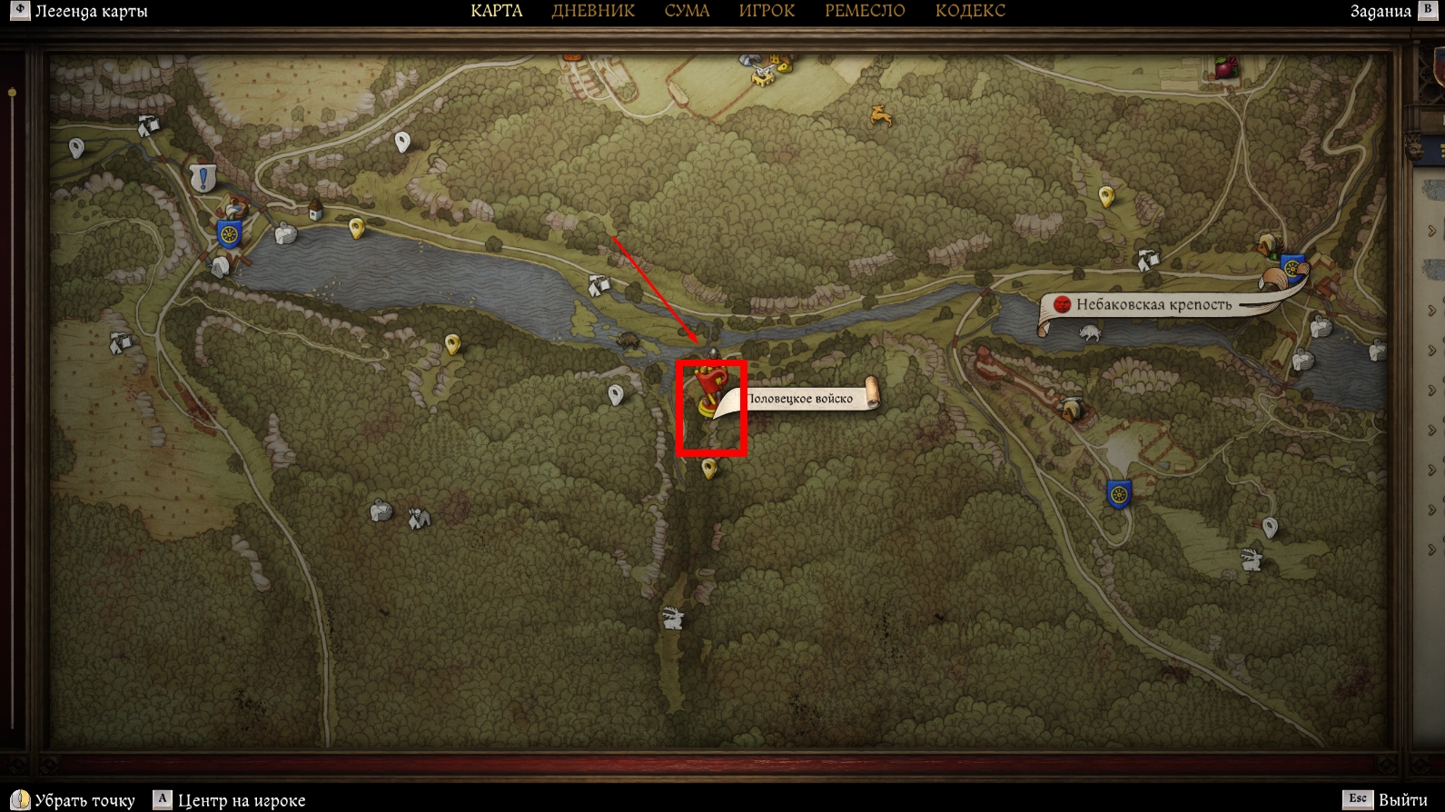 - Лежит в сундуке за палаткой в небольшом лагере Половецкого войска на западе от Небаковской крепости в Тросках