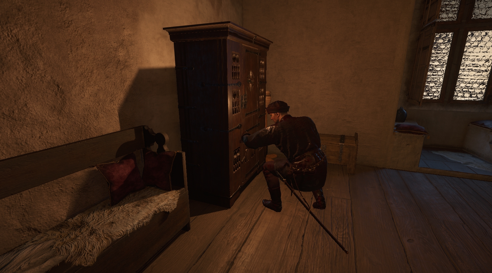 К сожалению, просто пойти и купить у любых торговцев одежду/доспехи, подходящие для скрытного стиля игры, не получится. Да, они предлагают вещи темных цветов, но этого недостаточно, чтобы сделать из Индржиха профессионального вора.