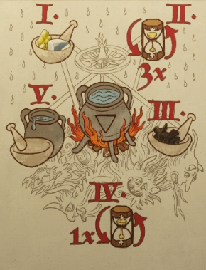 4. Кипятите состав в течение 1 оборота, увеличивая огонь с помощью мехов;