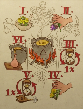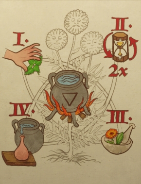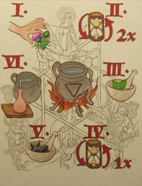 2. Добавьте в котелок чертополох и прокипятите в течение еще одного оборота часов;