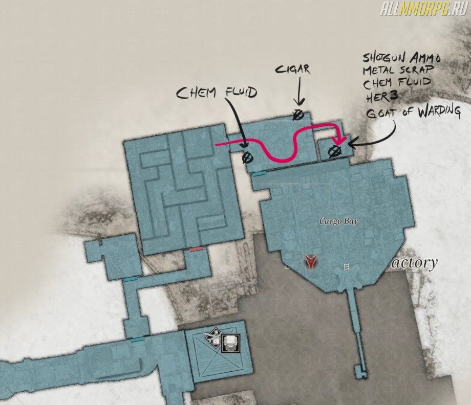 От места, где лежит сигара, сверните направо (на восток). Пролезьте в проход под столом и выберитесь через вентиляцию в следующую комнату. Там заберите патроны для дробовика, обломки металла, реагент и траву.