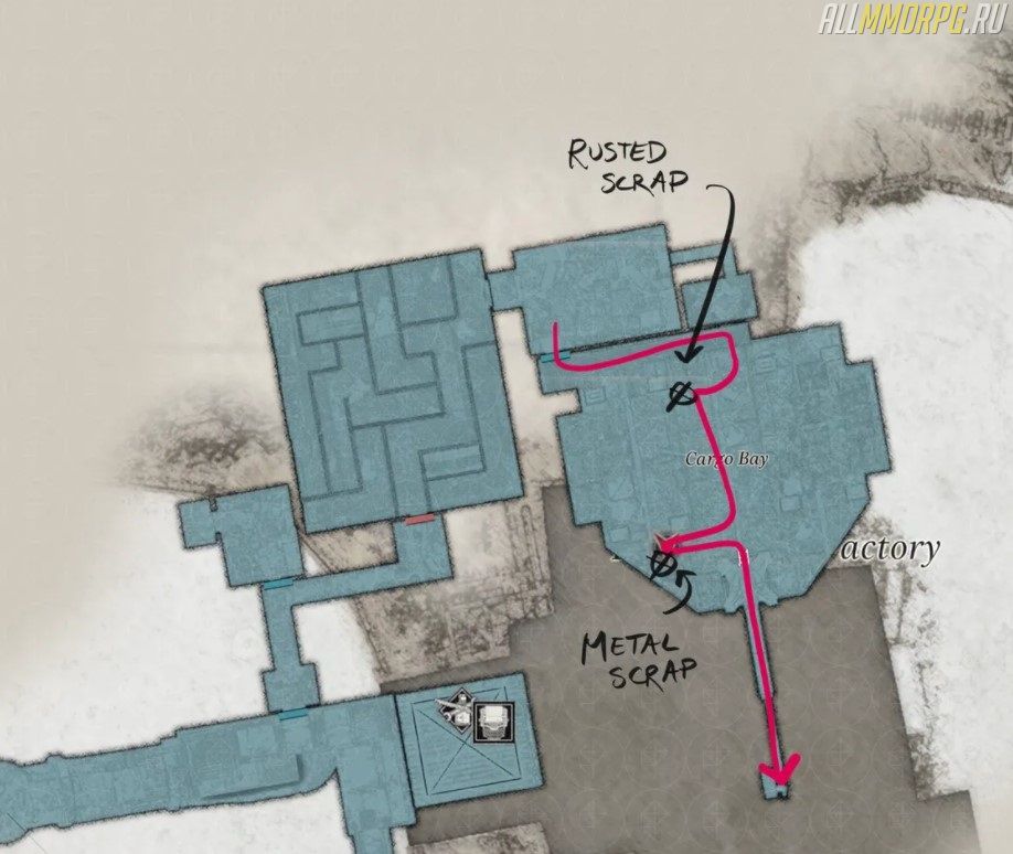 Перейдите налево и спрыгните вниз. Внизу поверните направо и заберите с ящика ржавые обломки. После идите к лестнице и поверните направо. Там еще один ящик с обломками металла.