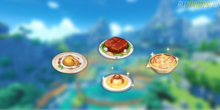 Сборная запеканка – лучшая еда воскрешения в Genshin Impact на данный момент. Она мгновенно оживляет героя и восполняет ему от 900 до 1500 ХП. Получить рецепт можно за выполнение поручения «Заказ блюда». Если готовить сборную запеканку вместе с Сахарозой, есть шанс получить блюдо «Питательное разнообразие». Оно обладает более мощными свойствами, нежели сборная запеканка – воскрешение героя и восстановление ему 20% здоровья от максимального запаса + 1500 ХП в качестве бонуса.