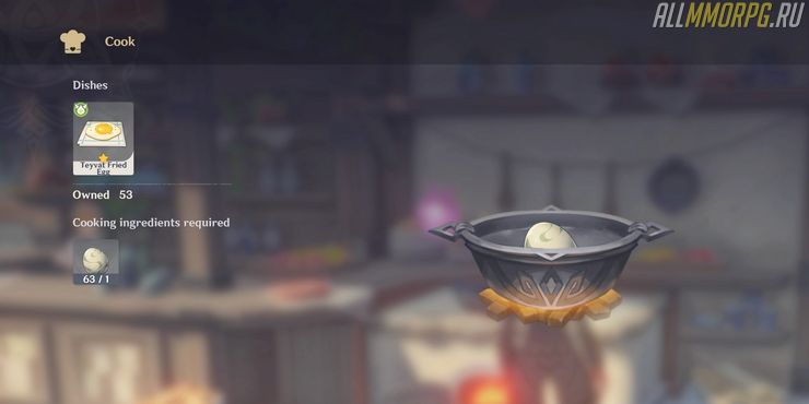 Еда в Genshin Impact является аналогом зелий, присутствующих в других играх. Она быстро расходуется и поэтому каждый игрок ищет те блюда, которые проще всего приготовить с минимальными затратами времени и продуктов. Яичница по-тейватски идеально подходит под это описание. Она используется для воскрешения героя с 150 ХП. Да, этого недостаточно, но расход ингредиентов для приготовления блюда крайне мал. На 1 яичницу по-тейватски нужно только 1 яйцо.