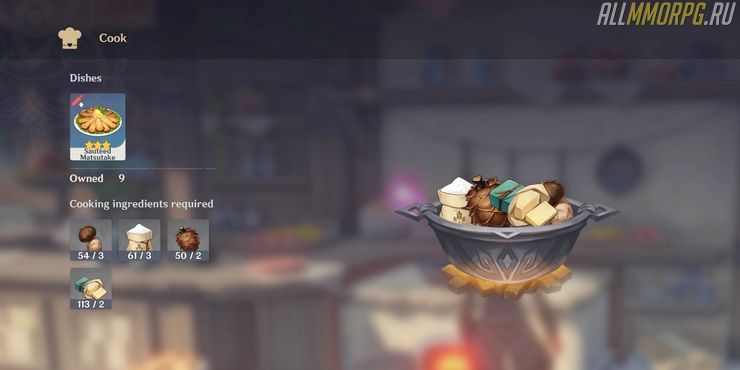Сила атаки – важная характеристика в игре, позволяющая наносить больше урона и быстро уничтожать врагов. Если вам мало бонусов на атаку от артефактов, приготовьте обжаренные мацутакэ. Это блюдо увеличивает показатель атаки максимум на 228 единиц, а его эффект сохраняется в течение 5 минут. В перечень компонентов блюда входит 3 мацутакэ, 2 шишки, 2 сливочного масла и 3 муки.
