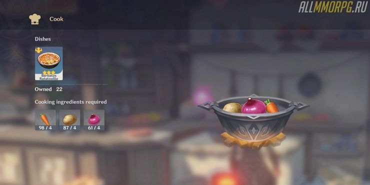 Выносливость часто недооценивается в Genshin Impact и многие игроки даже не задумываются о приготовлении блюд, усиливающих этот параметр. И зря. Выносливость помогает избегать урона во время боя, исследовать высокие горные пики, бегать на дальнюю дистанцию и т. д. Но у нее есть одна неприятная особенность – способность заканчиваться в самый ответственный момент. Чтобы вы не оказались в такой ситуации, всегда держите в своем инвентаре солянку Архонта, которая уменьшает затраты выносливости на 20%. Длится ее эффект аж 15 минут! К тому же, готовить ее очень просто. Все, что вам нужно – 4 луковицы, столько же картофеля и моркови.