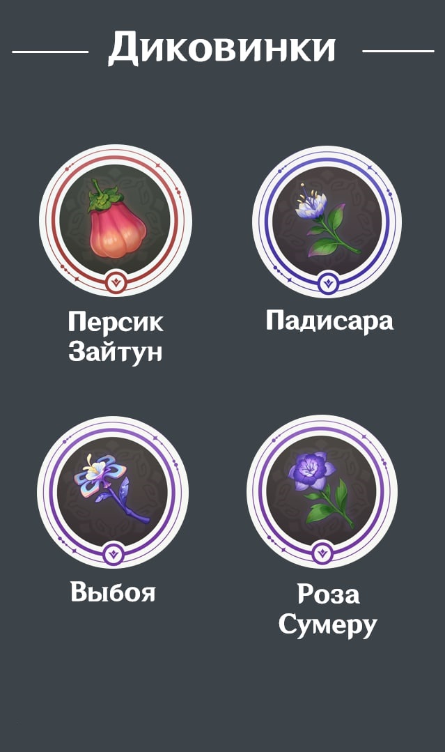 - Персик Зайтун. Плоды лесного кустарника с твердой и сладкой мякотью. Жители Сумеру говорят, что он благотворно влияет на работу мозга.