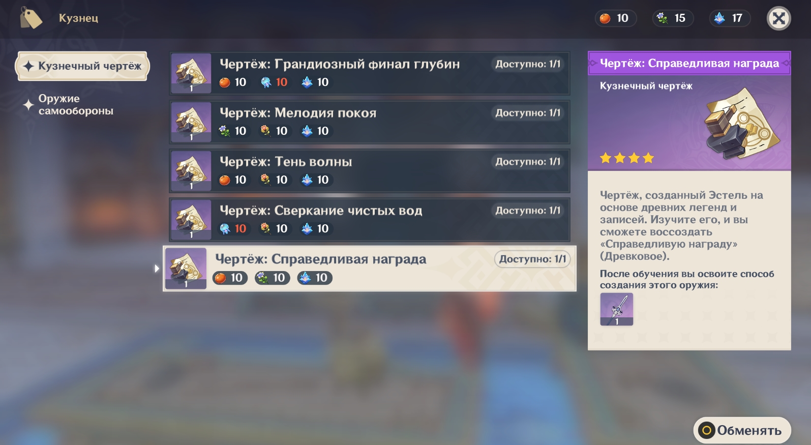 3. Как улучшить копье Справедливая награда в Genshin Impact?