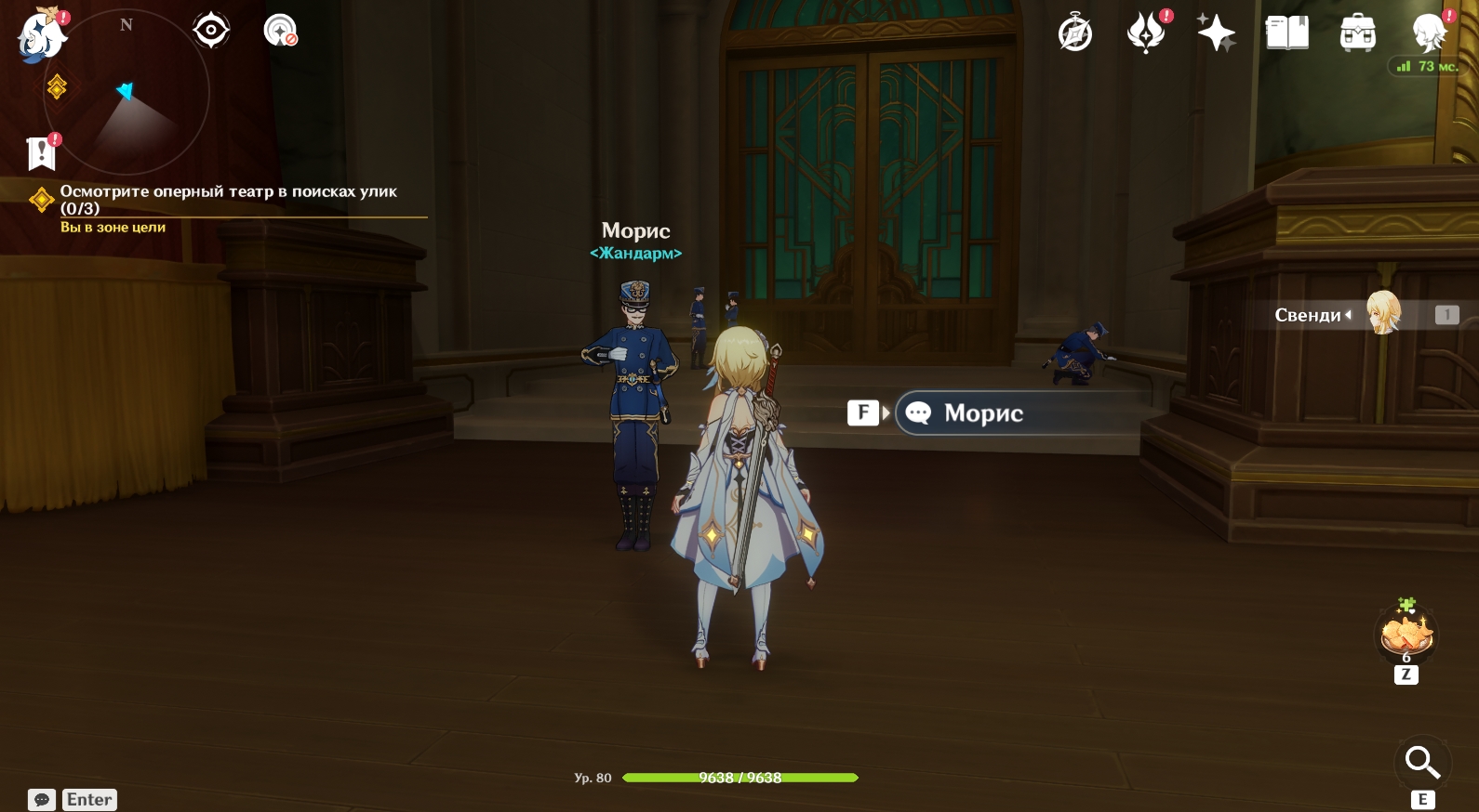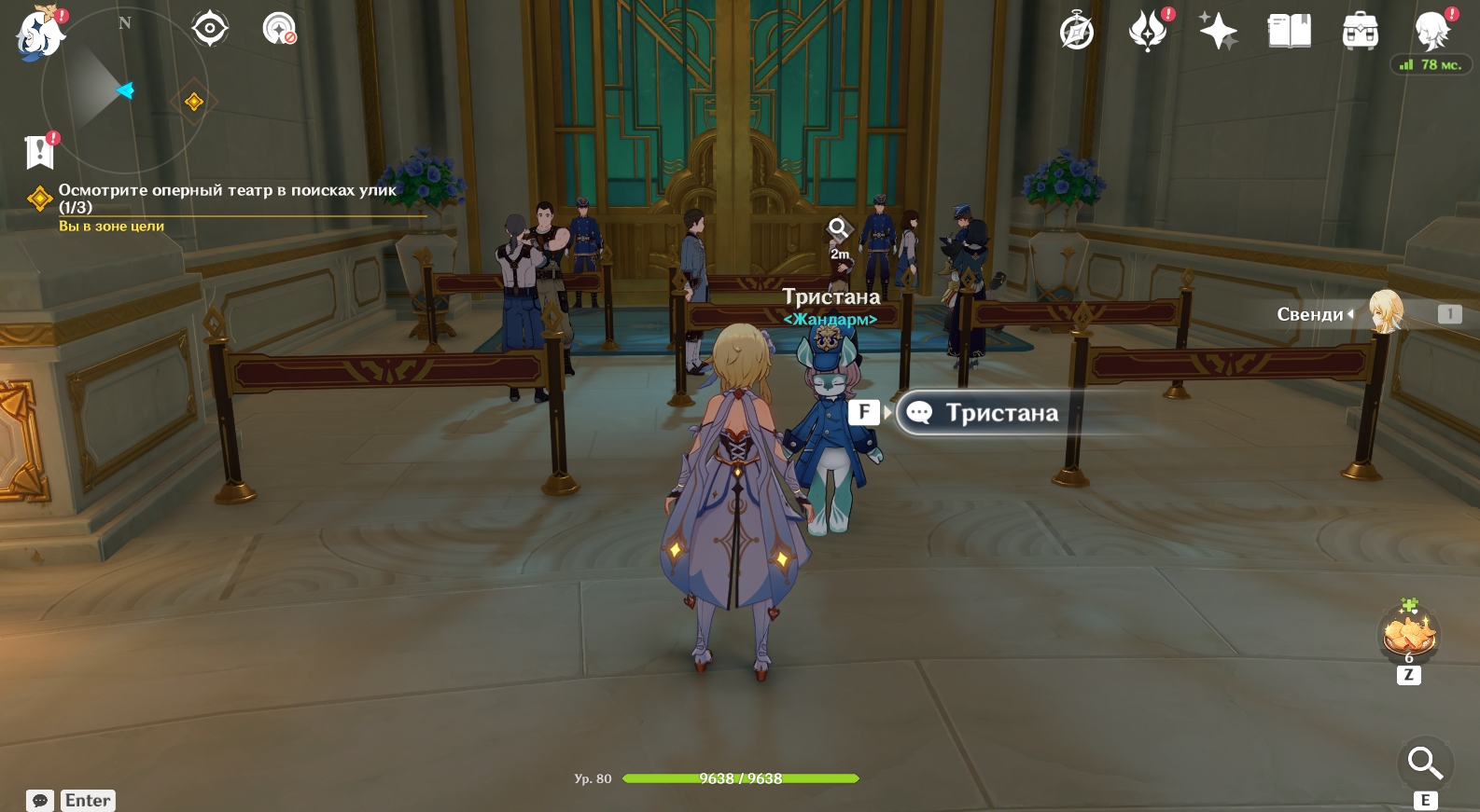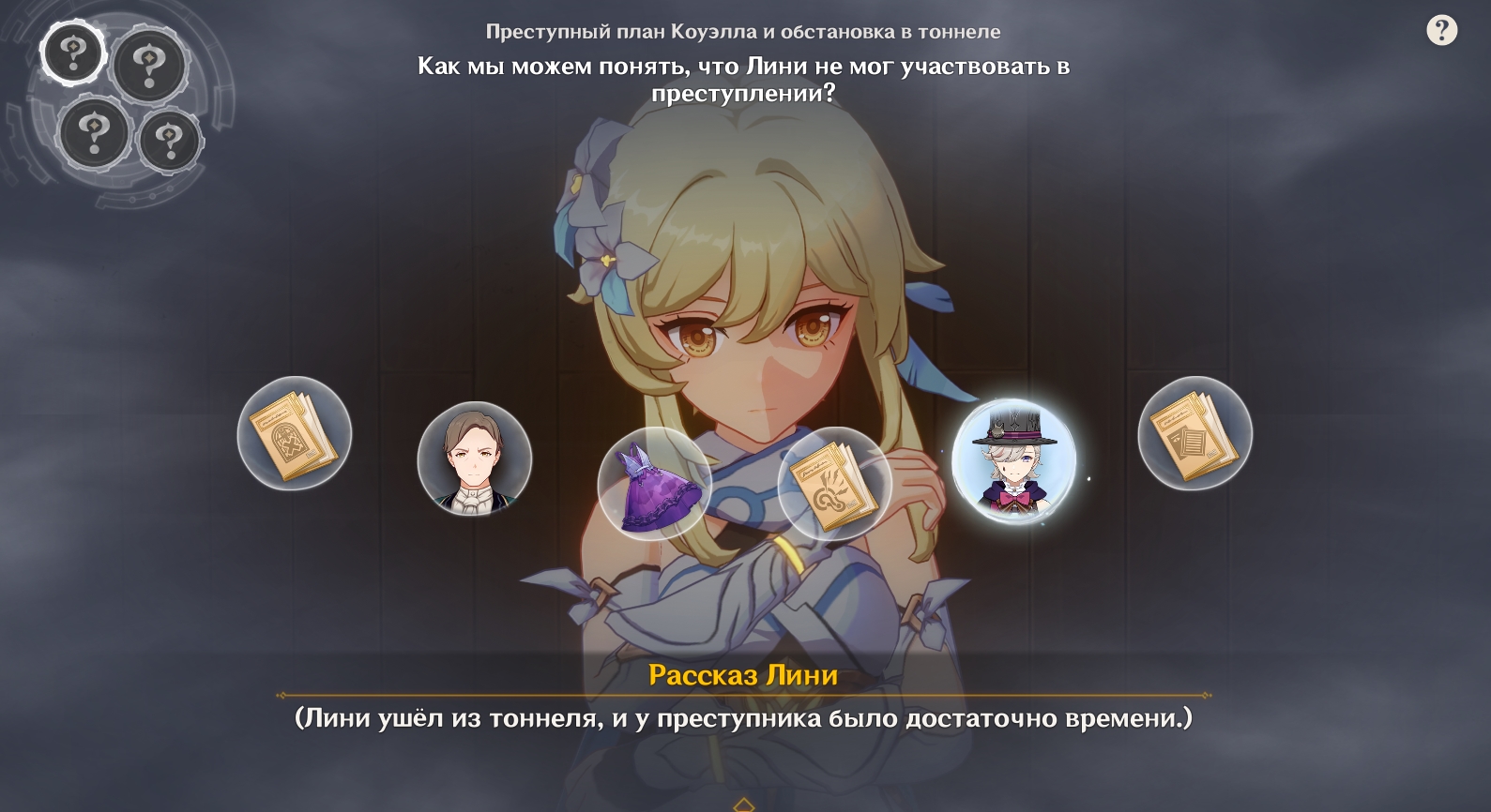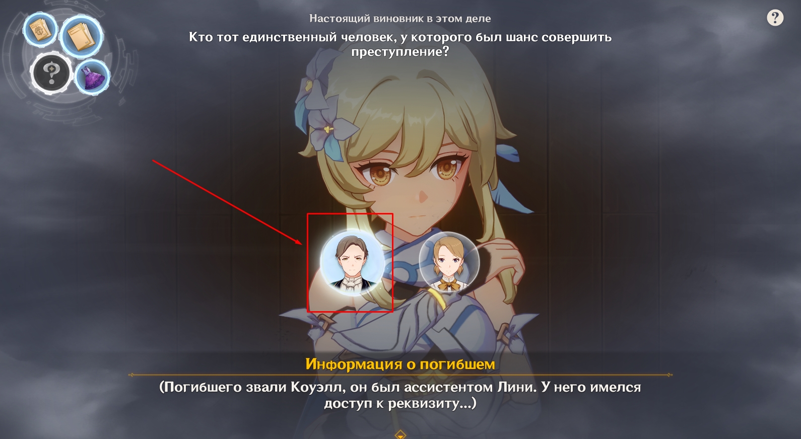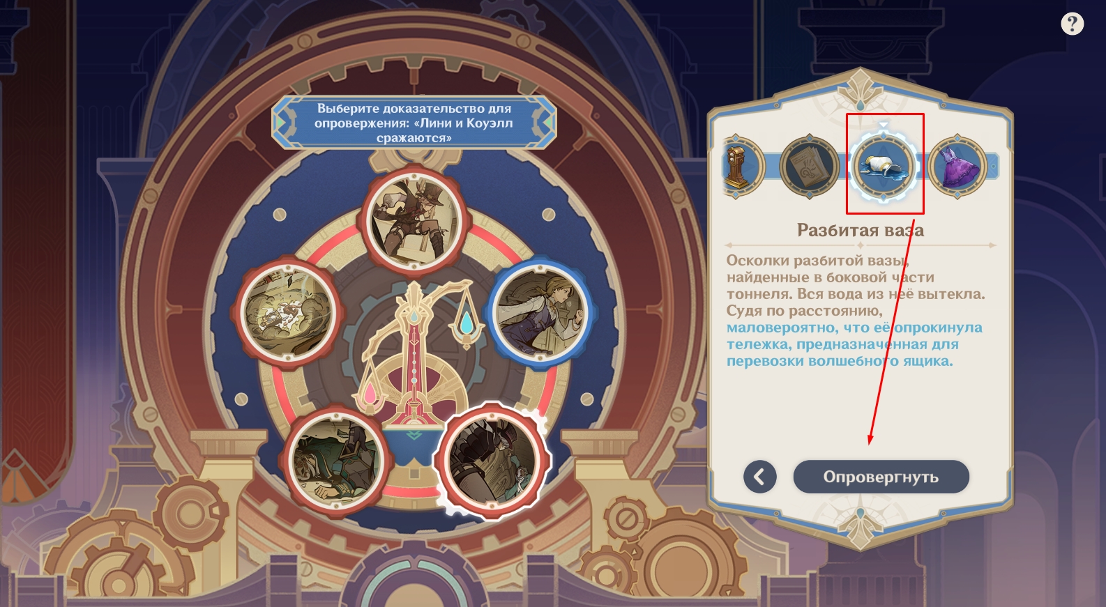 Спуститесь на нижний ярус зала и подойдите к квестовому маркеру, чтобы принять участие в судебном заседании. На моменте допроса, когда вы узнаете, что Лини и Линетт являются Фатуи, нажимайте любую диалоговую строчку. Ваш выбор не повлияет на ход событий. У вас будет шанс уйти на перерыв и заставить Лини рассказать всю правду. После перерыва вернитесь в главный зал театра.