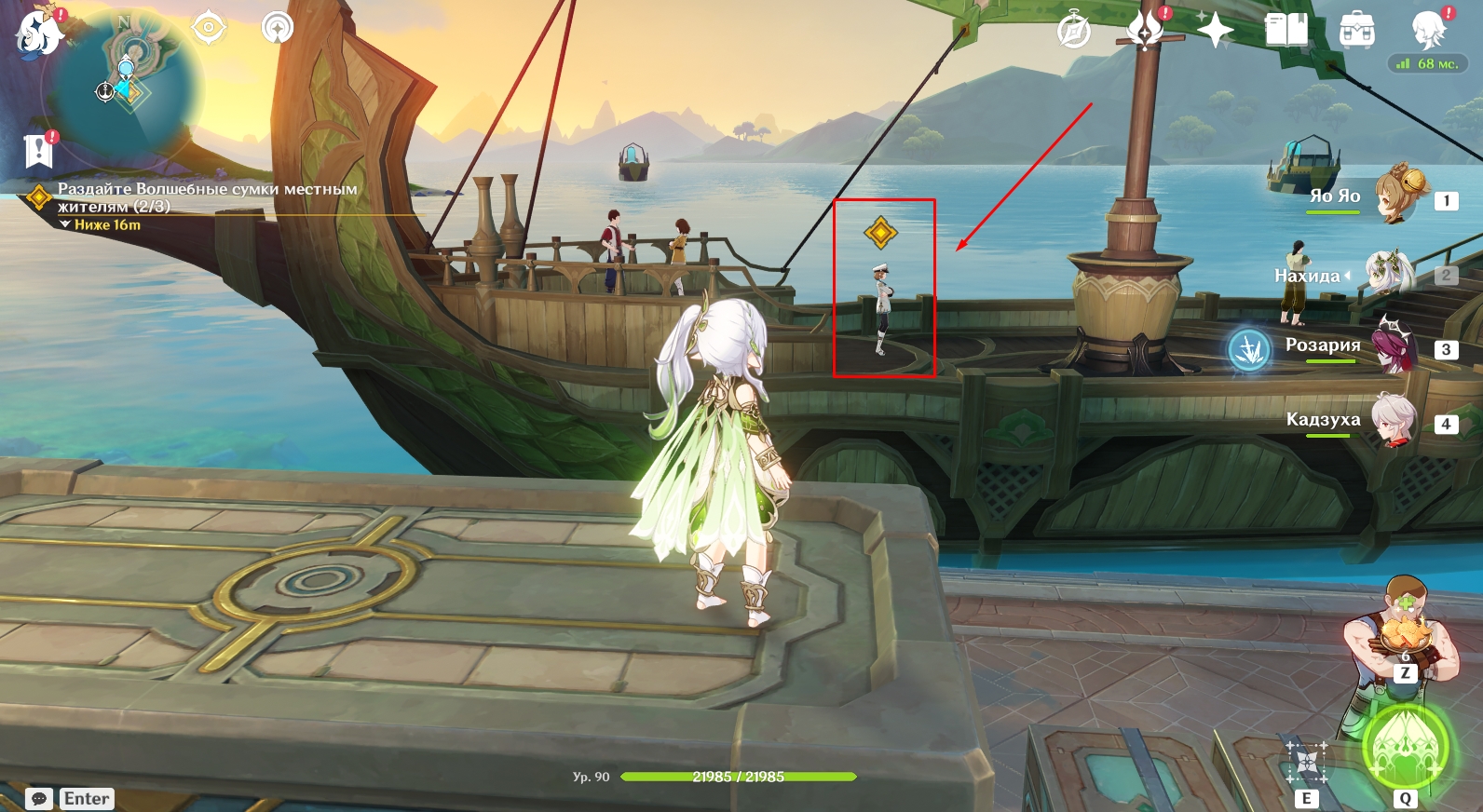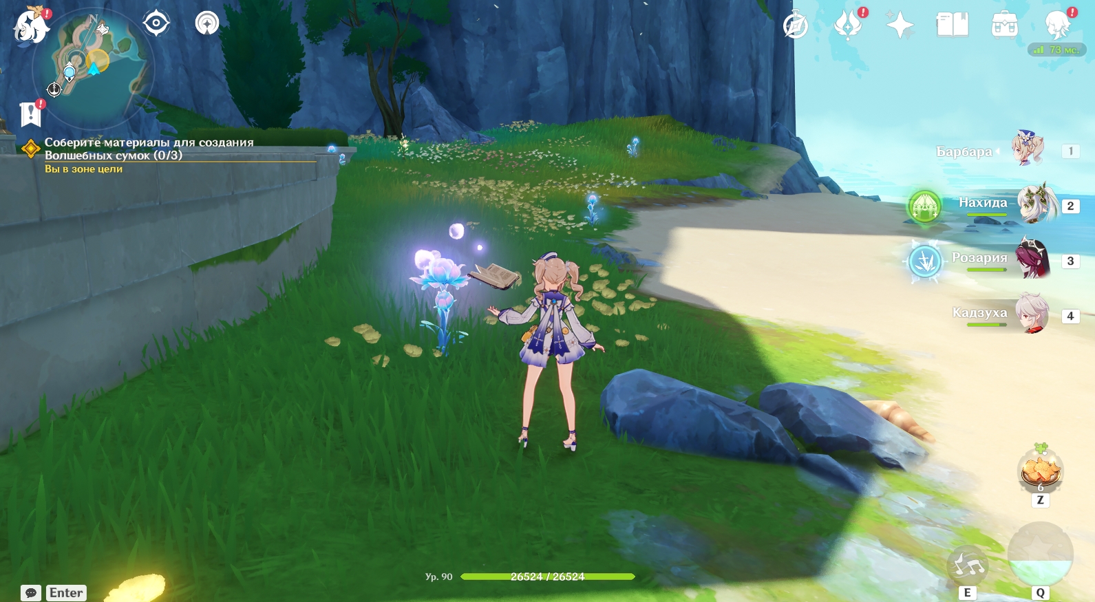 Раздав сумки, вернитесь к Лини. Ему снова нужна помощь. В этот раз вам потребуется собрать три цветка Ромарин для мастерской, в которой изготавливаются Волшебные сумки. Они растут на восточном побережье порта. Чтобы растение стало доступно для сбора, используйте на нем способность любого Гидро персонажа (как в случае с Пылающими цветками). Подойдет бесплатная Барбара или Путешественник с гидро-способностями. Как сменить главному герою стихию на Гидро, мы рассказали в данном гайде.