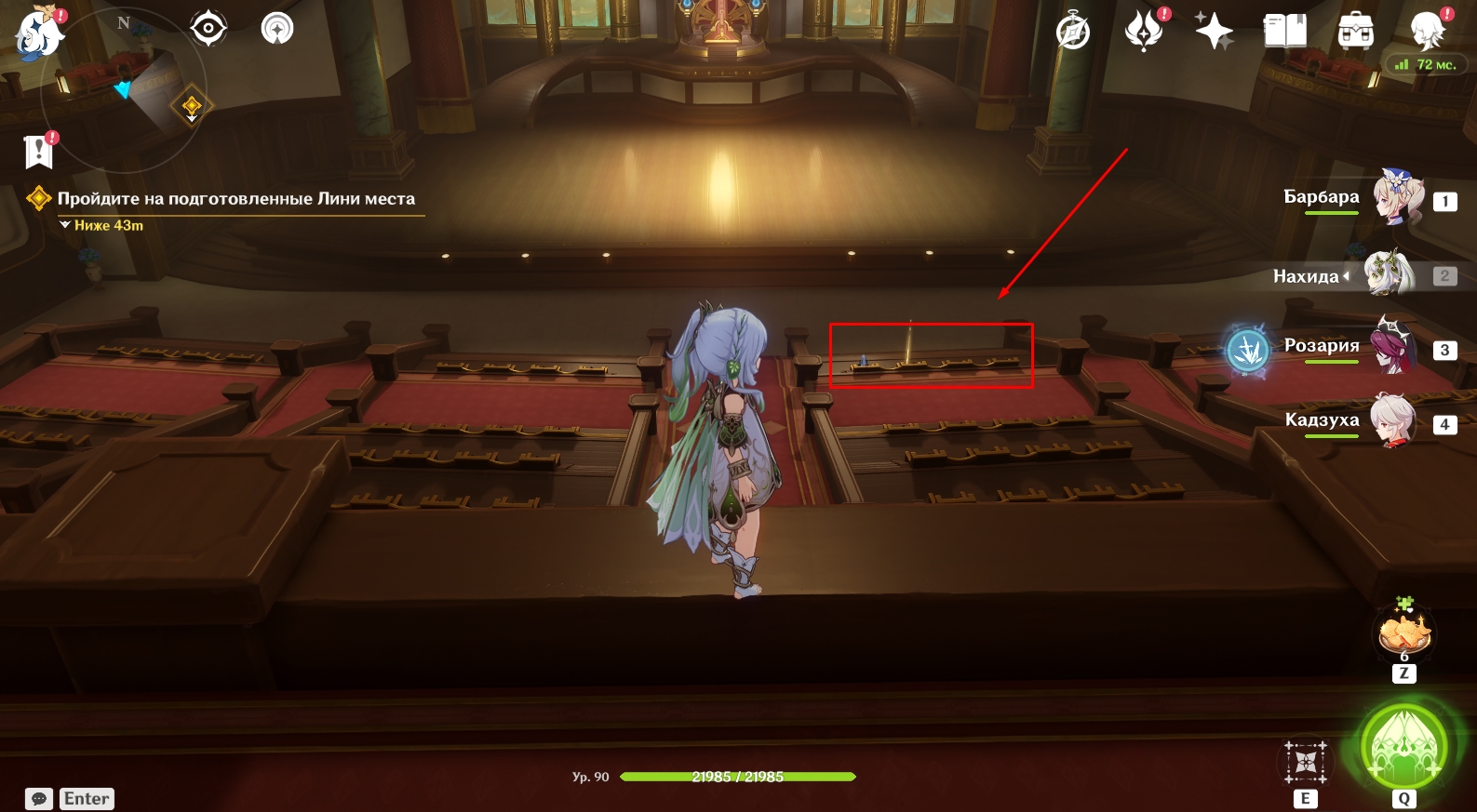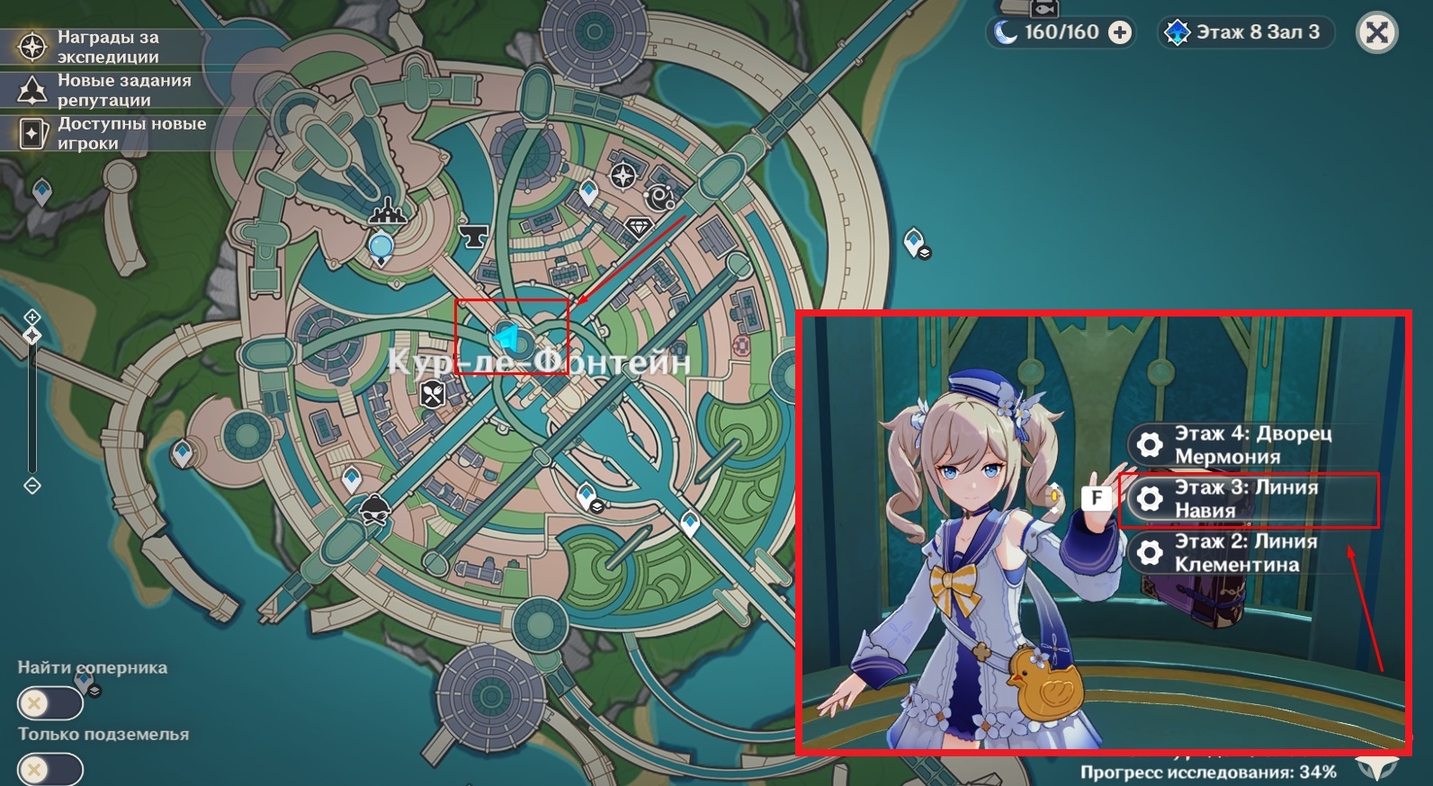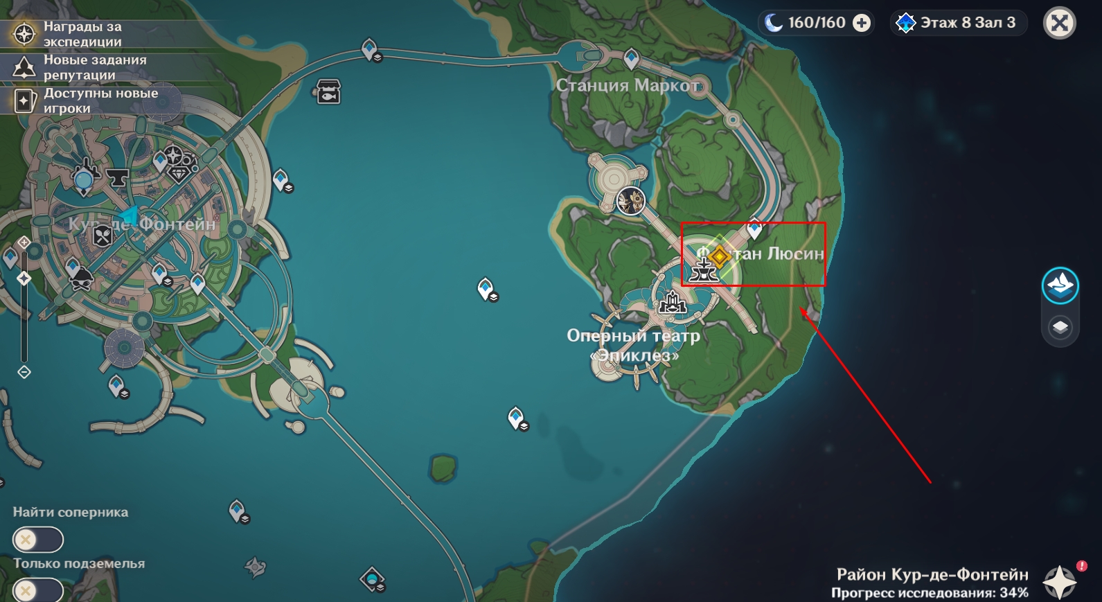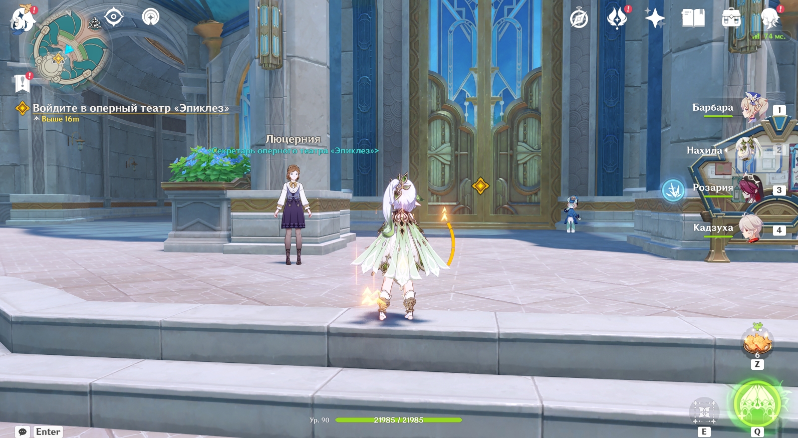 Теперь настало время посетить выступление Лини в оперном театре «Эпиклез». Если вы уже исследовали эту область Фонтейна, используйте телепорт неподалеку от Фонтана Люсин. В противном случае зайдите в здание Водного вокзала, которое находится в центре столицы Гидро региона, и поднимитесь на 3 Этаж: Линия Навия.