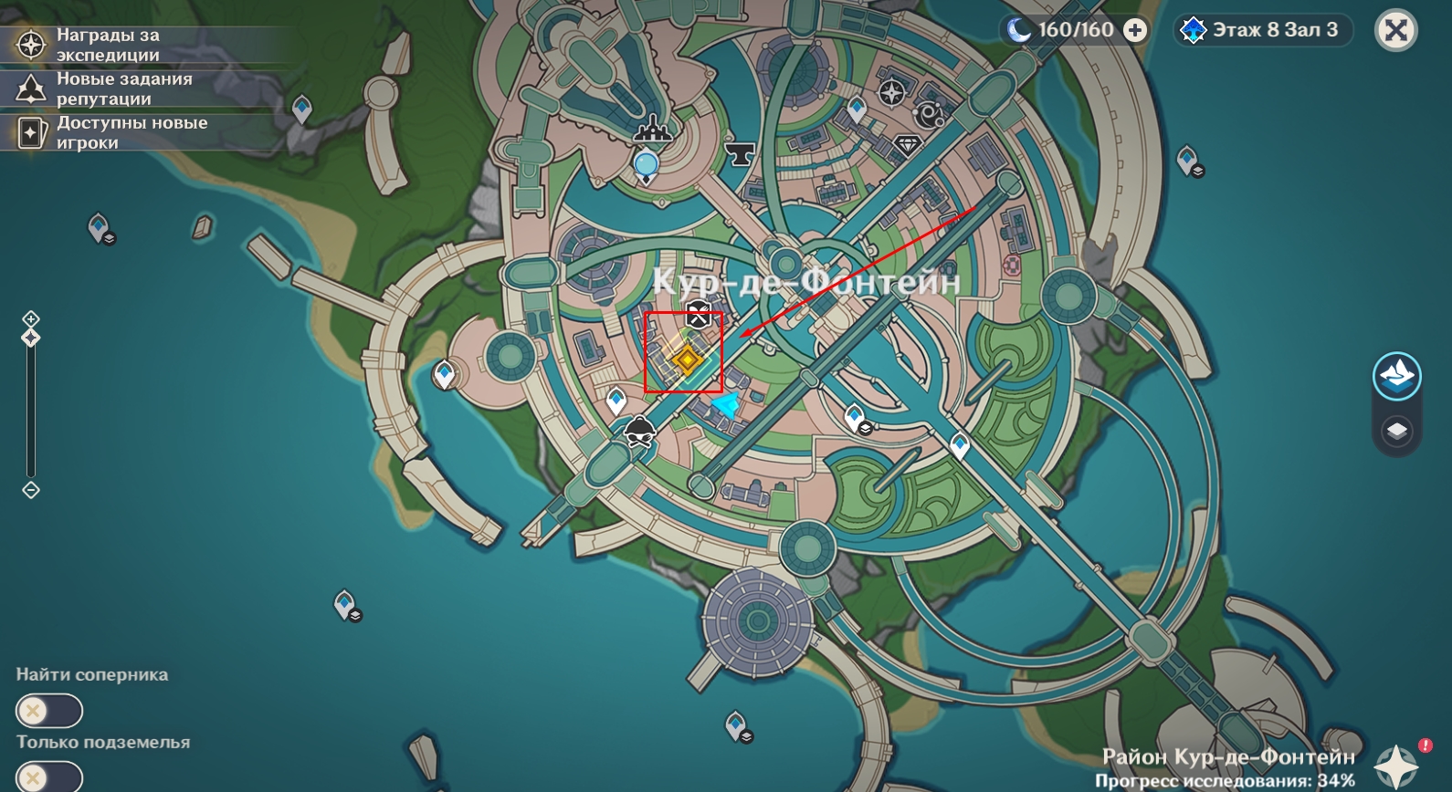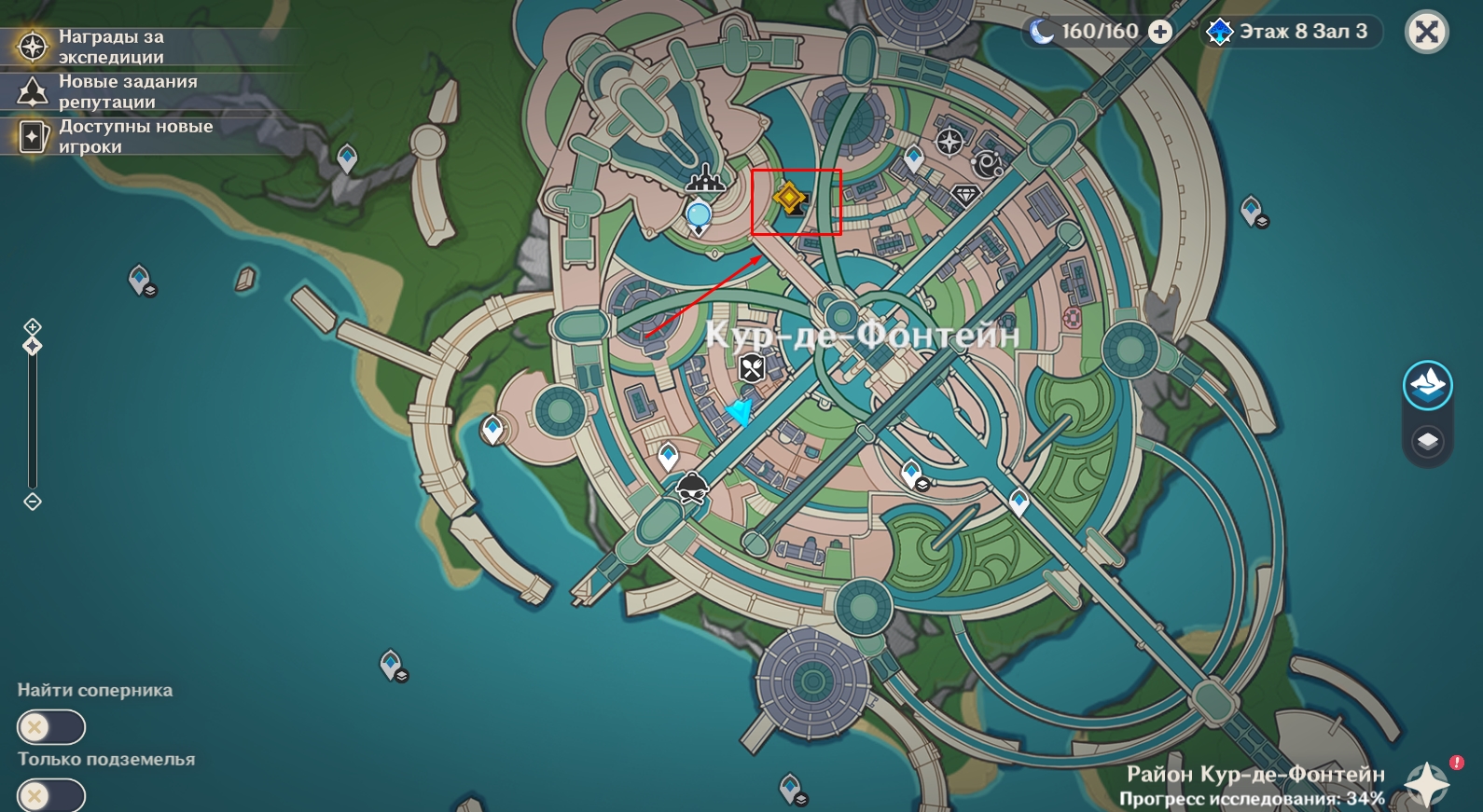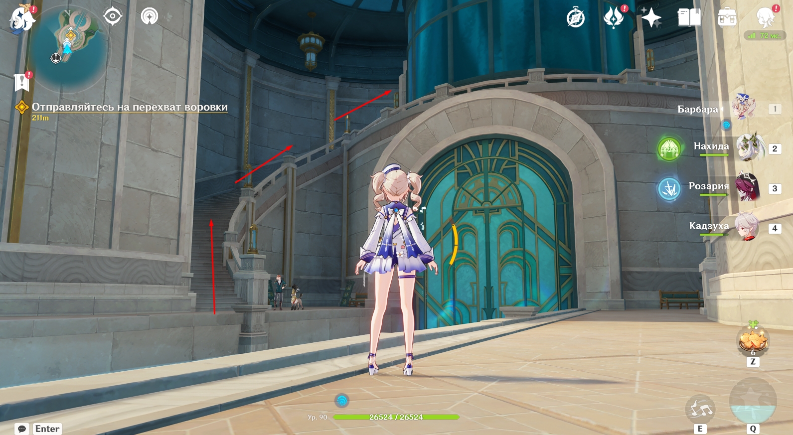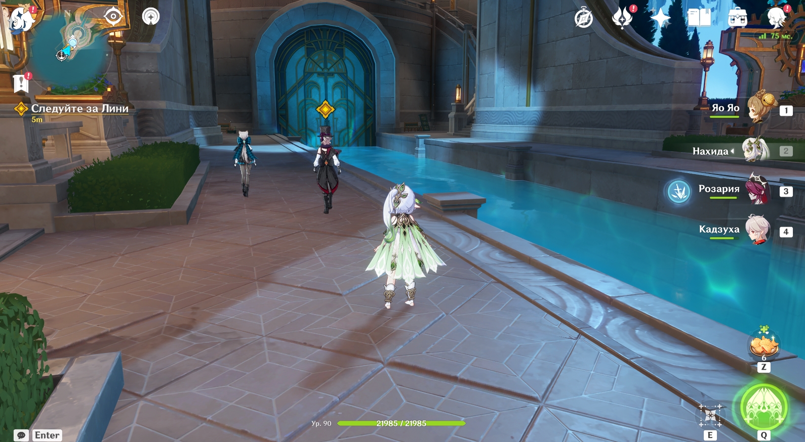 Теперь настало время посетить выступление Лини в оперном театре «Эпиклез». Если вы уже исследовали эту область Фонтейна, используйте телепорт неподалеку от Фонтана Люсин. В противном случае зайдите в здание Водного вокзала, которое находится в центре столицы Гидро региона, и поднимитесь на 3 Этаж: Линия Навия.