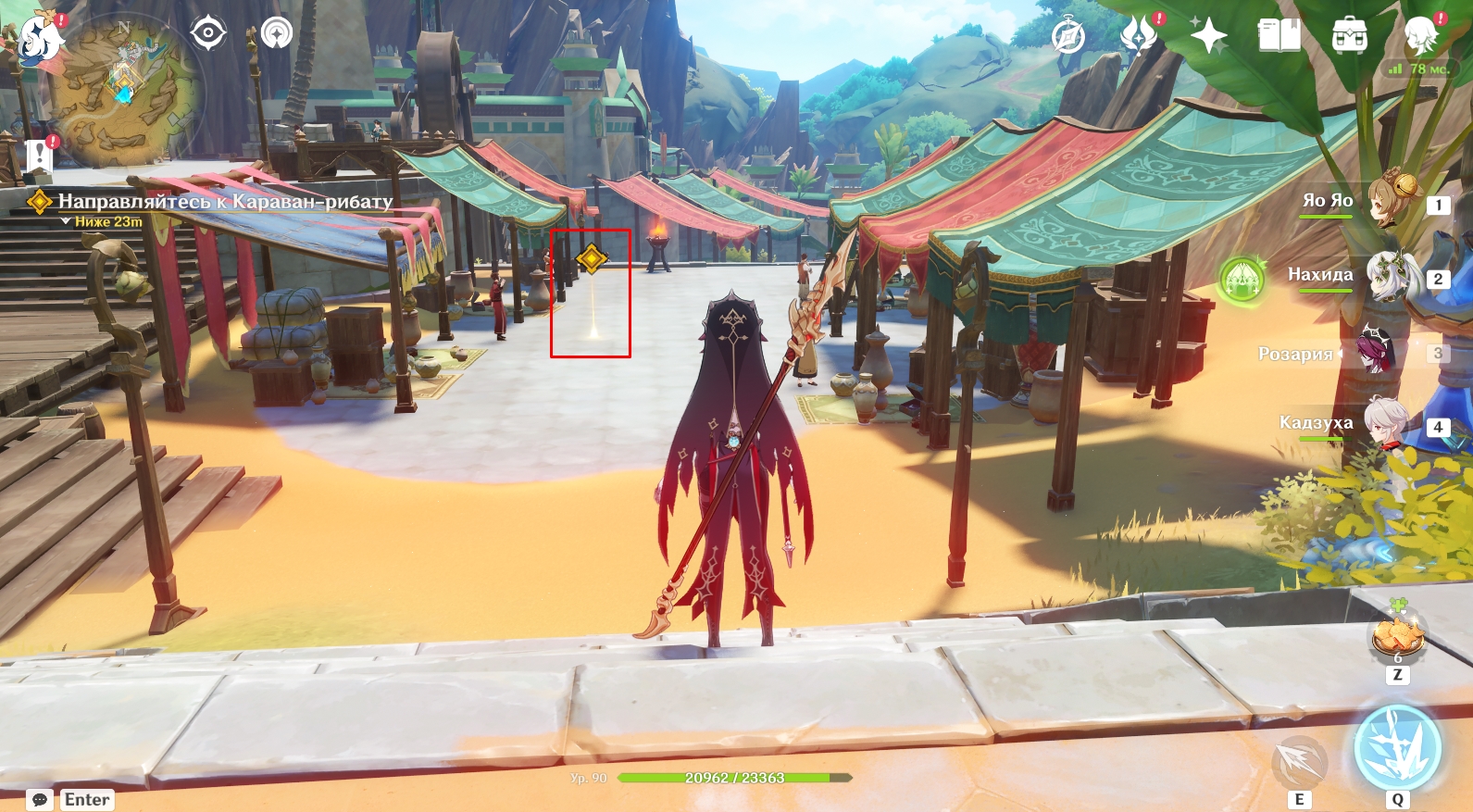 Ваш путь в Фонтейн начинается в Караван-рибате. Переместитесь в это место и подойдите к торговым лавкам, чтобы запустить кат-сцену.