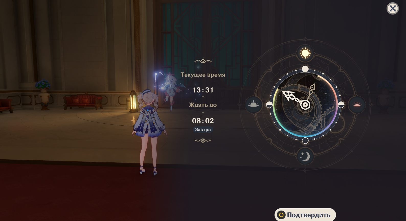 После вернитесь к лестнице и выберитесь наверх. Там вас ждет Навия. Когда чаепитие закончится, перемотайте время в игре до 8 утра следующего дня.