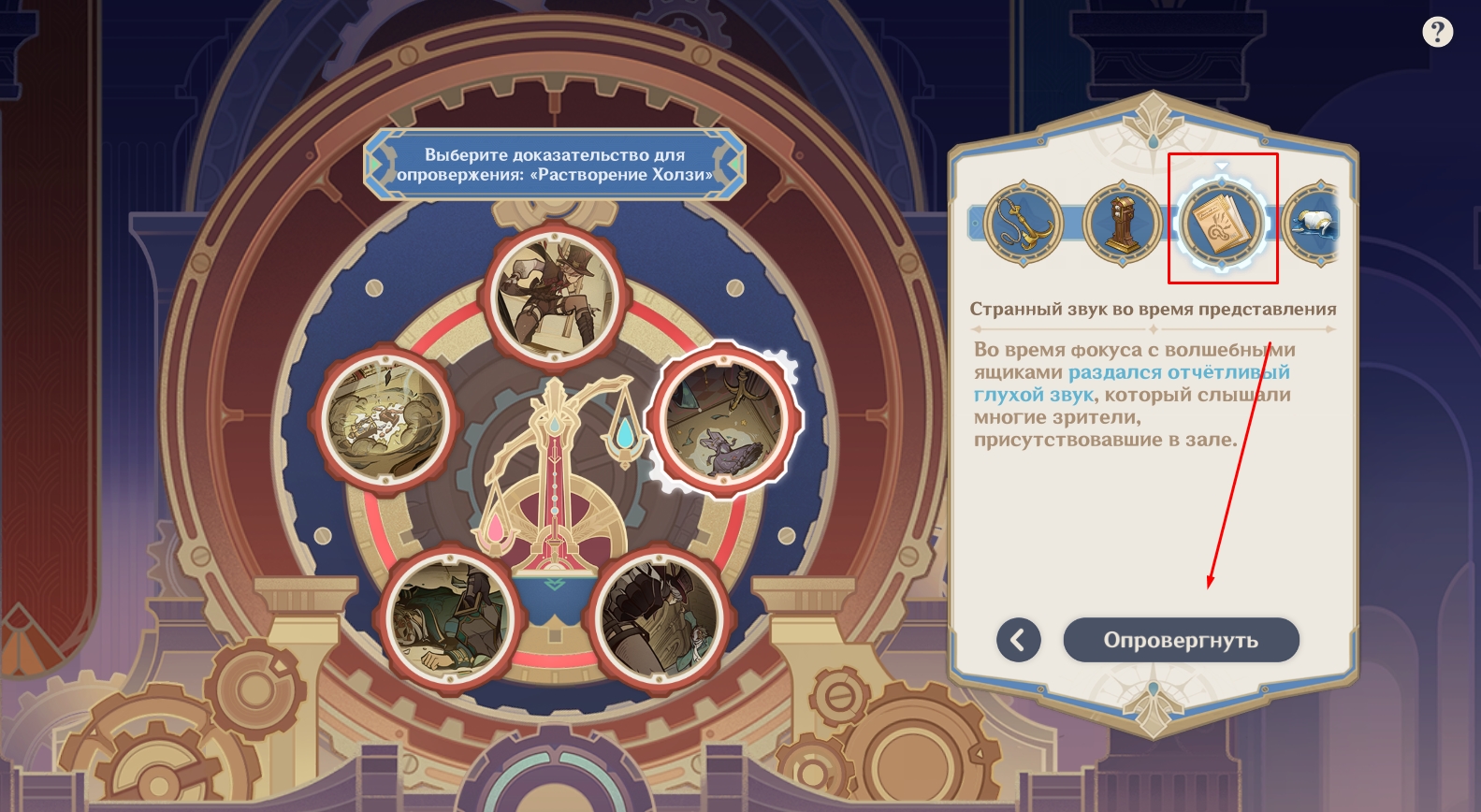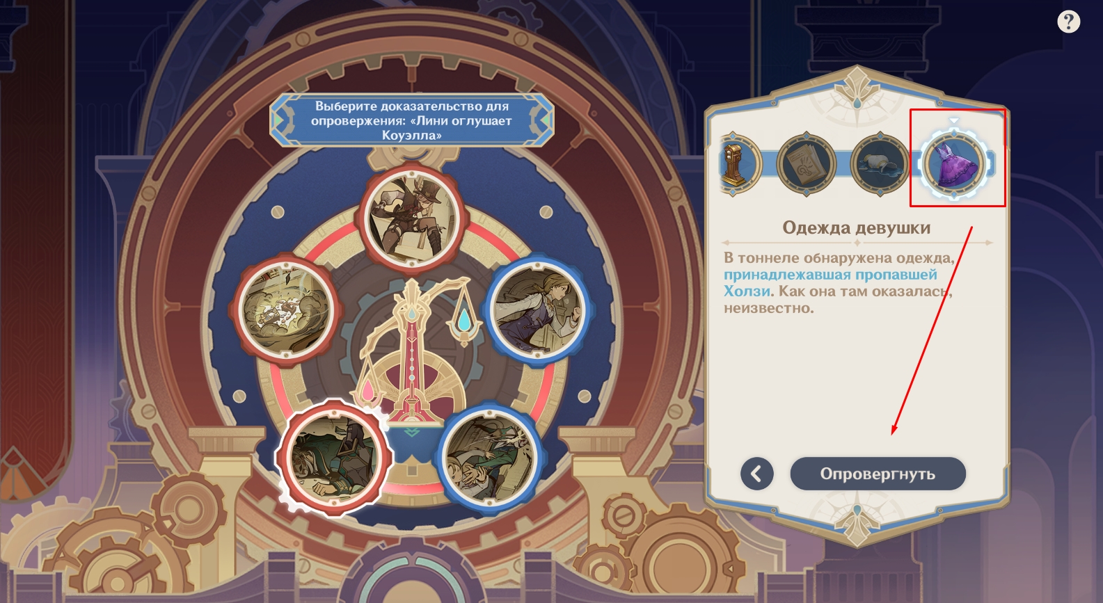 Во второй части судебного заседания вам придется сыграть в мини-игру, суть которой использовать имеющиеся у Путешественницы улики и доказательства, чтобы убедить присутствующих в зале в своей правоте. Начинайте разбираться во всем по порядку: