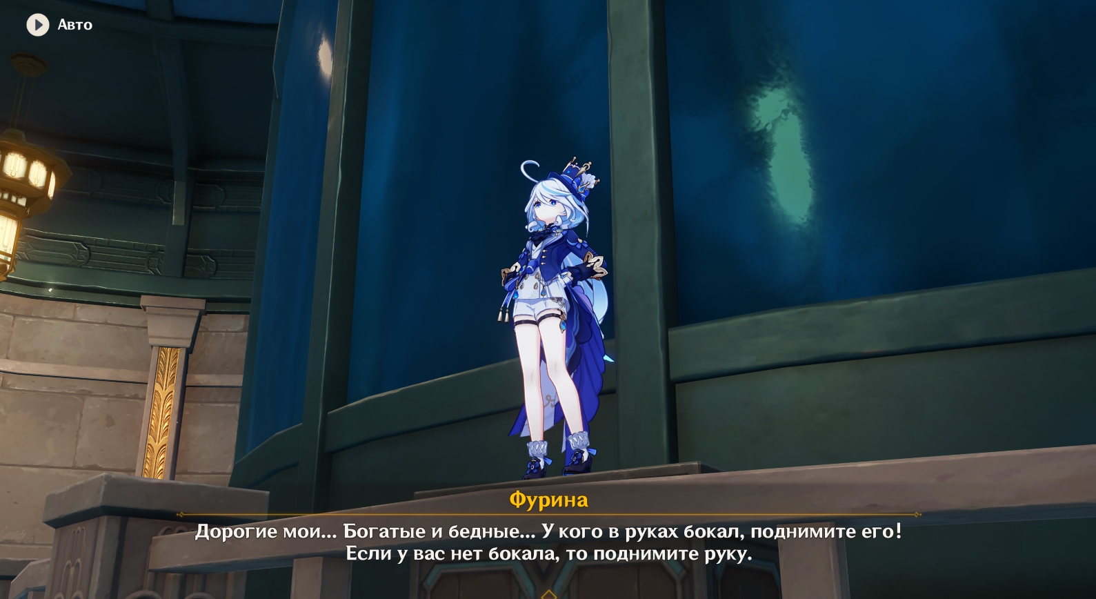 Когда разговор с новыми друзьями закончится, проследуйте за ними и посмотрите сцену встречи Гидро Архонта с Путешественницей и Паймон. К сожалению, Фурина повела себя не слишком гостеприимно и приказала арестовать главную героиню и ее спутницу. Однако Лини смог переубедить Архонта изменить свое решение.