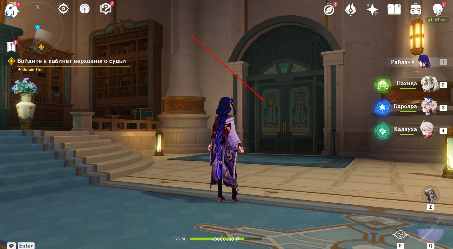 Первая цель квеста находится во Дворце Мермония. Вход в него расположен рядом со статуей Семи Архонтов в Кур-де-Фонтейне. Войдите в здание и зайдите в кабинет Невиллета (дверь справа).
