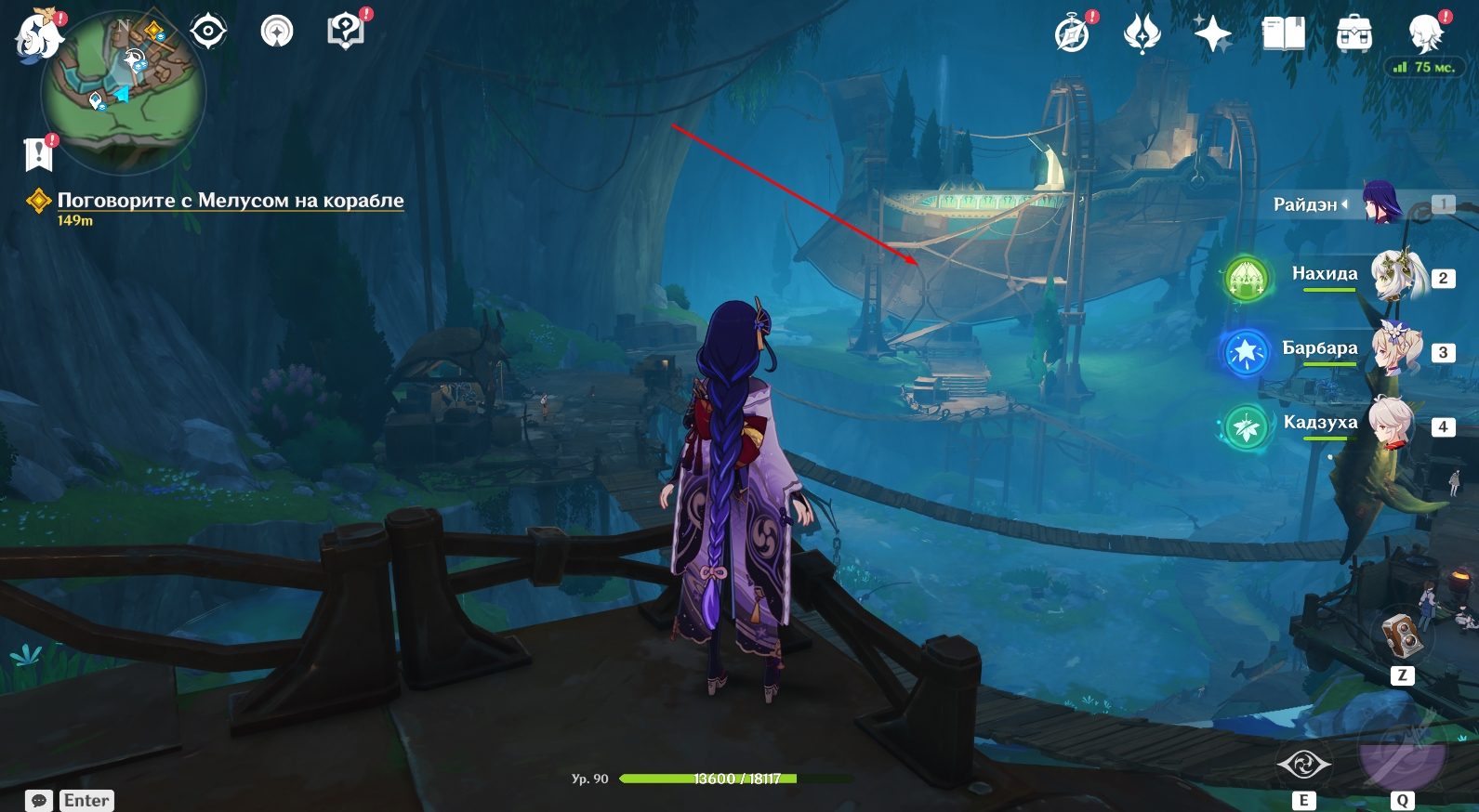 - Перейдите по мостику и вызовите подъемник;